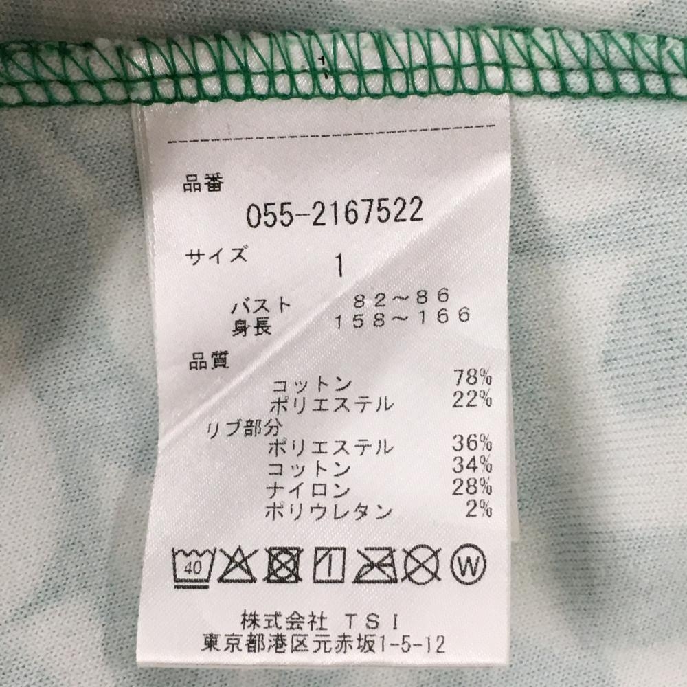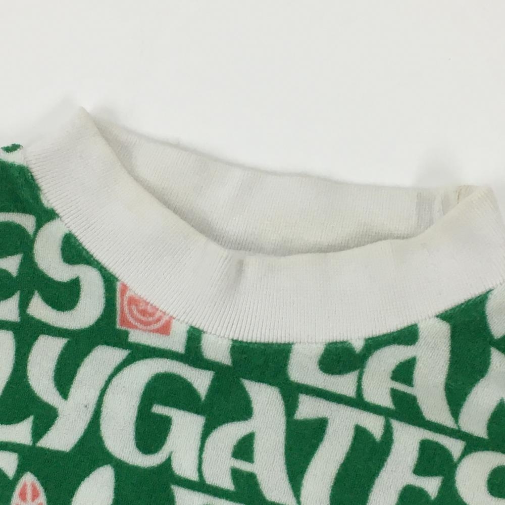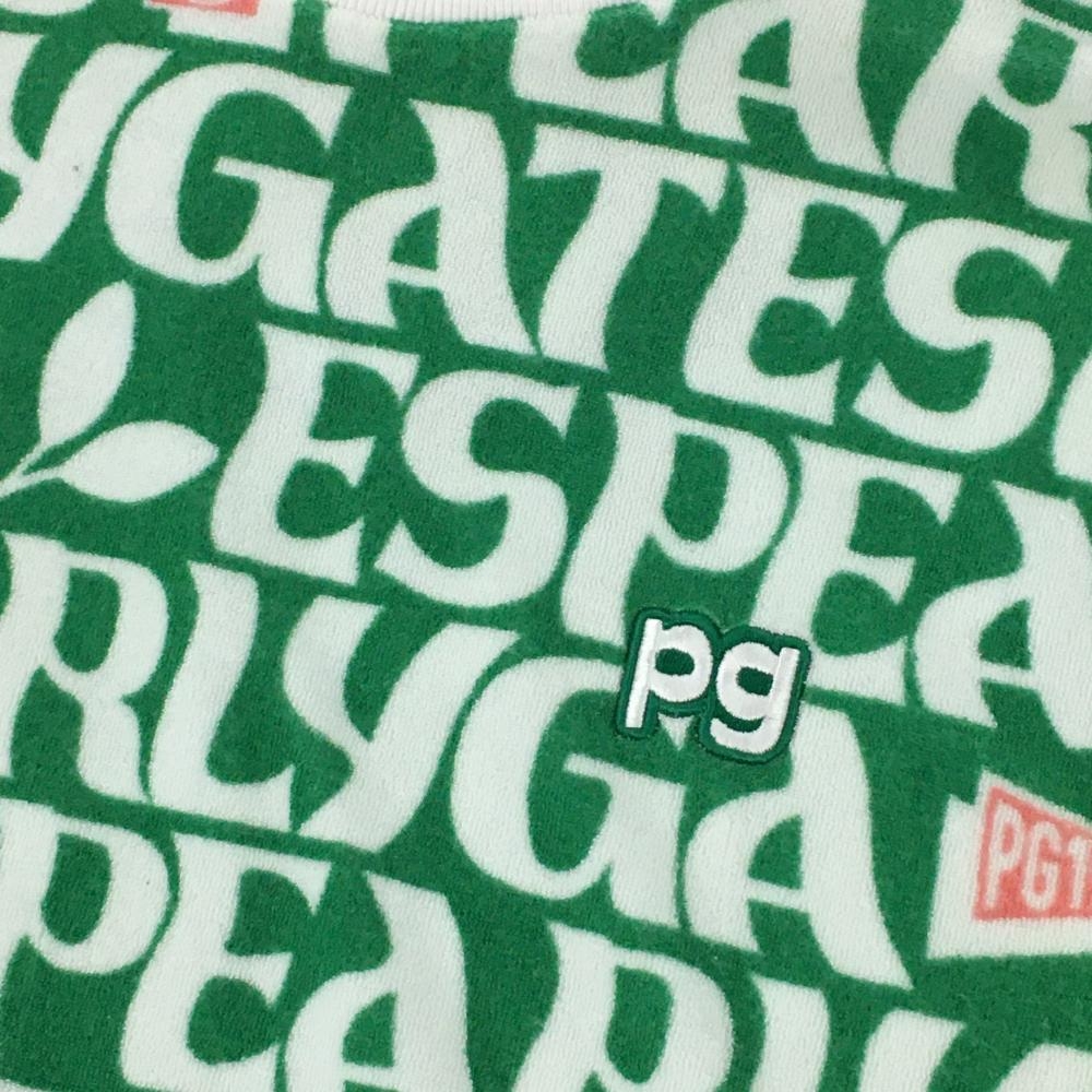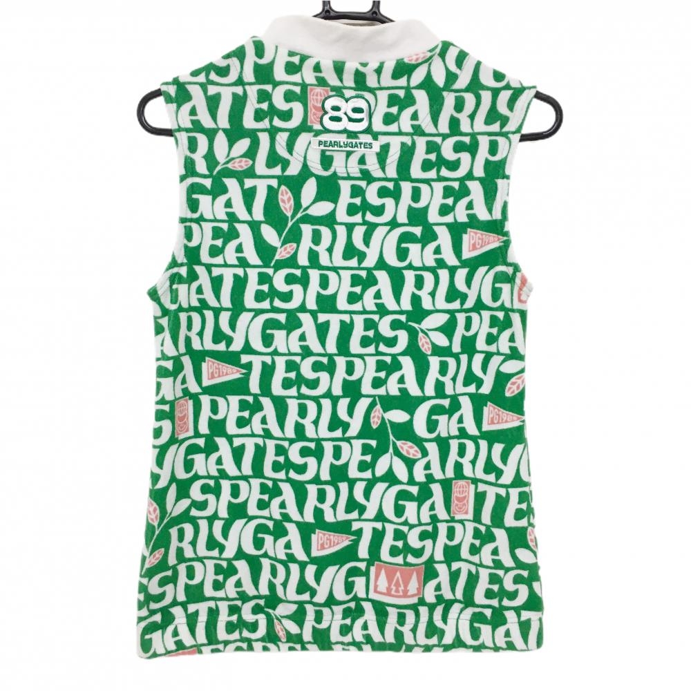 パーリーゲイツ ノースリーブハイネックシャツ グリーン×白 ロゴ英字総柄 レディース 1(M) ゴルフウェア PEARLY GATES
