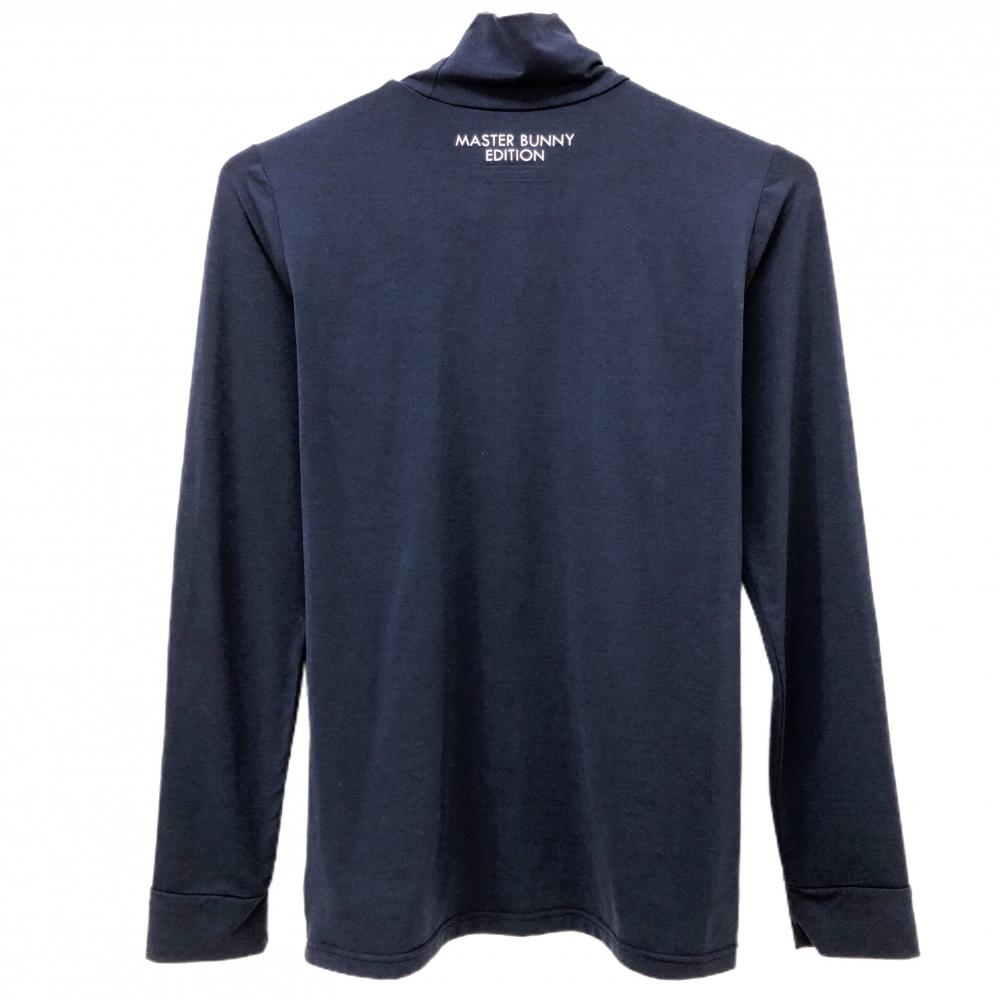 【美品】マスターバニー 長袖ハイネックシャツ ネイビー×白 花フロッキープリント レディース 0(S) ゴルフウェア MASTER BUNNY EDITION
