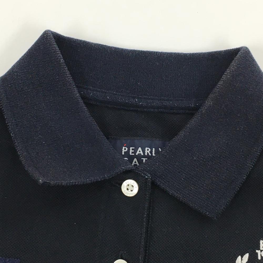 パーリーゲイツ 半袖ポロシャツ ダークネイビー×ネイビー×白 フロントロゴ レディース 1(M) ゴルフウェア PEARLY GATES