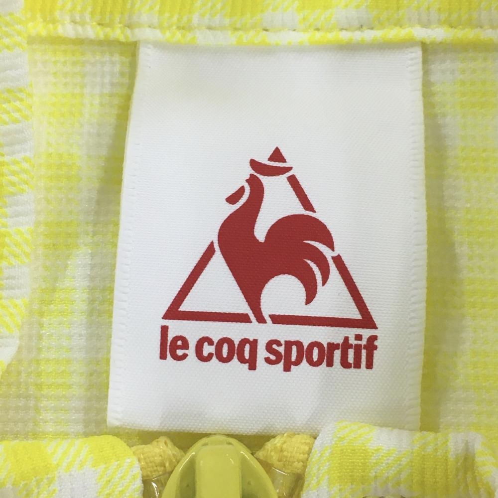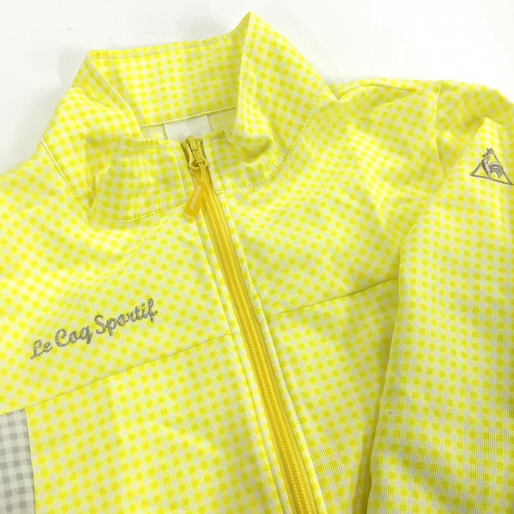 【超美品】ルコックスポルティフ ジャケット イエロー×白×グレー チェック 裾ドローコード レディース M ゴルフウェア le coq sportif