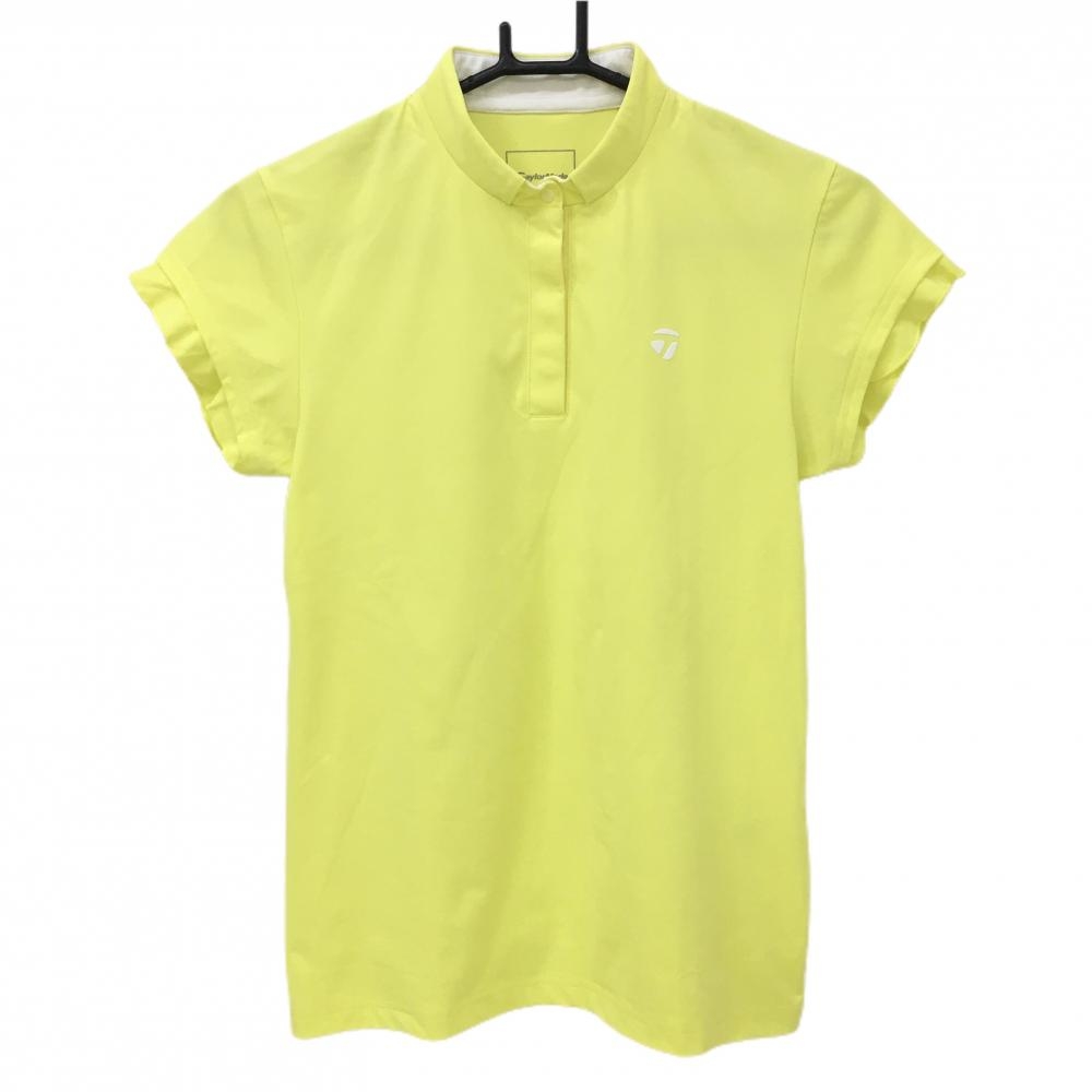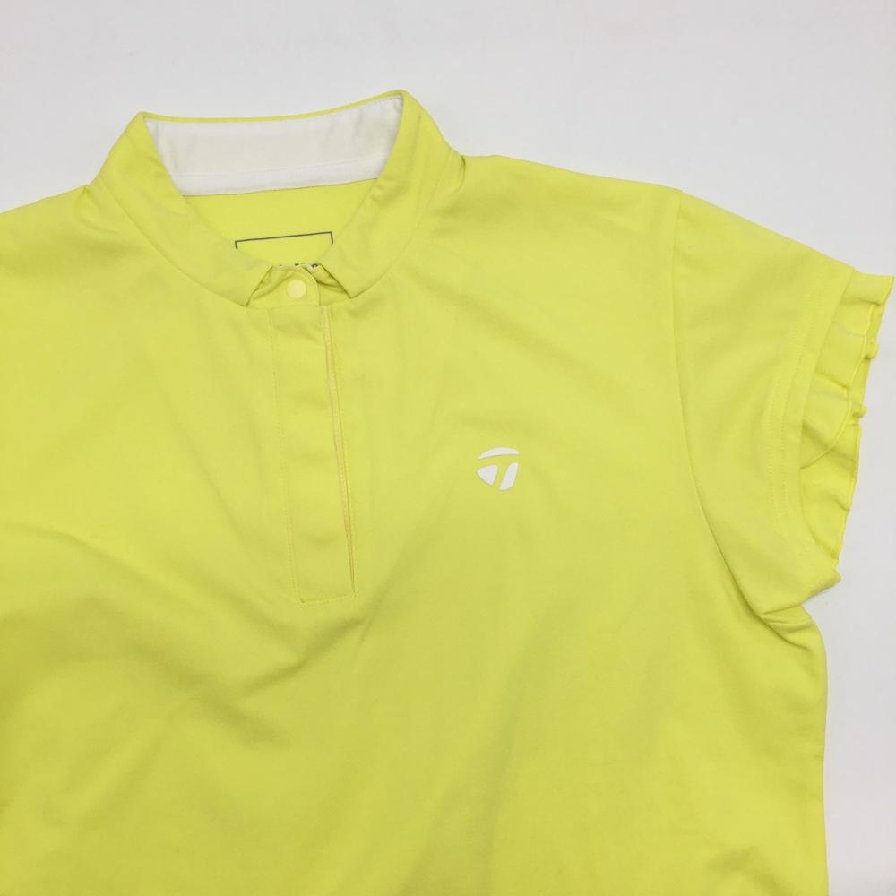 【美品】テーラーメイド 半袖ハイネックシャツ イエロー スナップボタン 袖口フリル 胸元ロゴ レディース M ゴルフウェア TaylorMade