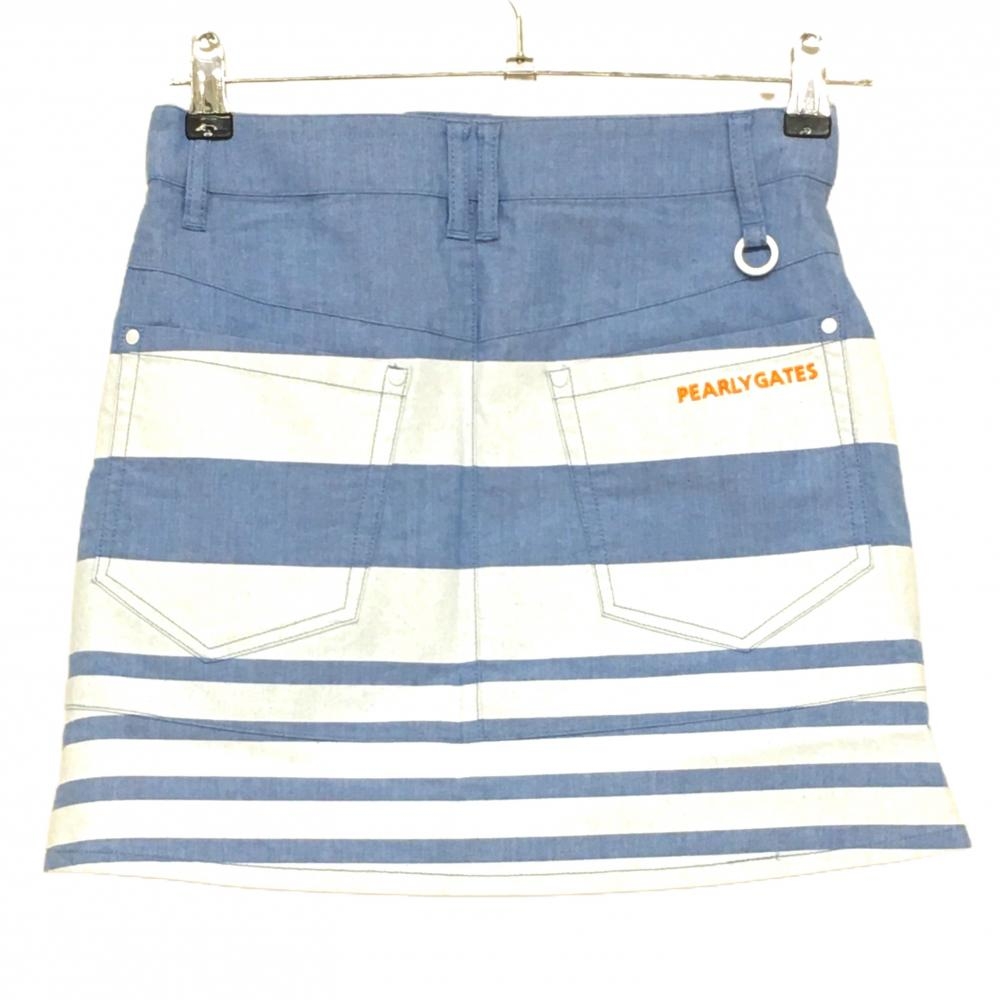 【新品】パーリーゲイツ スカート ブルー系×白 ボーダー ロゴオレンジ レディース 0(S) ゴルフウェア PEARLY GATES