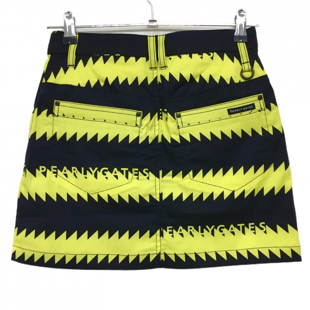 【新品】パーリーゲイツ スカート 黒×イエロー ギザギザボーダー フロントフェイクボタン レディース 00(XS) ゴルフウェア PEARLY GATES