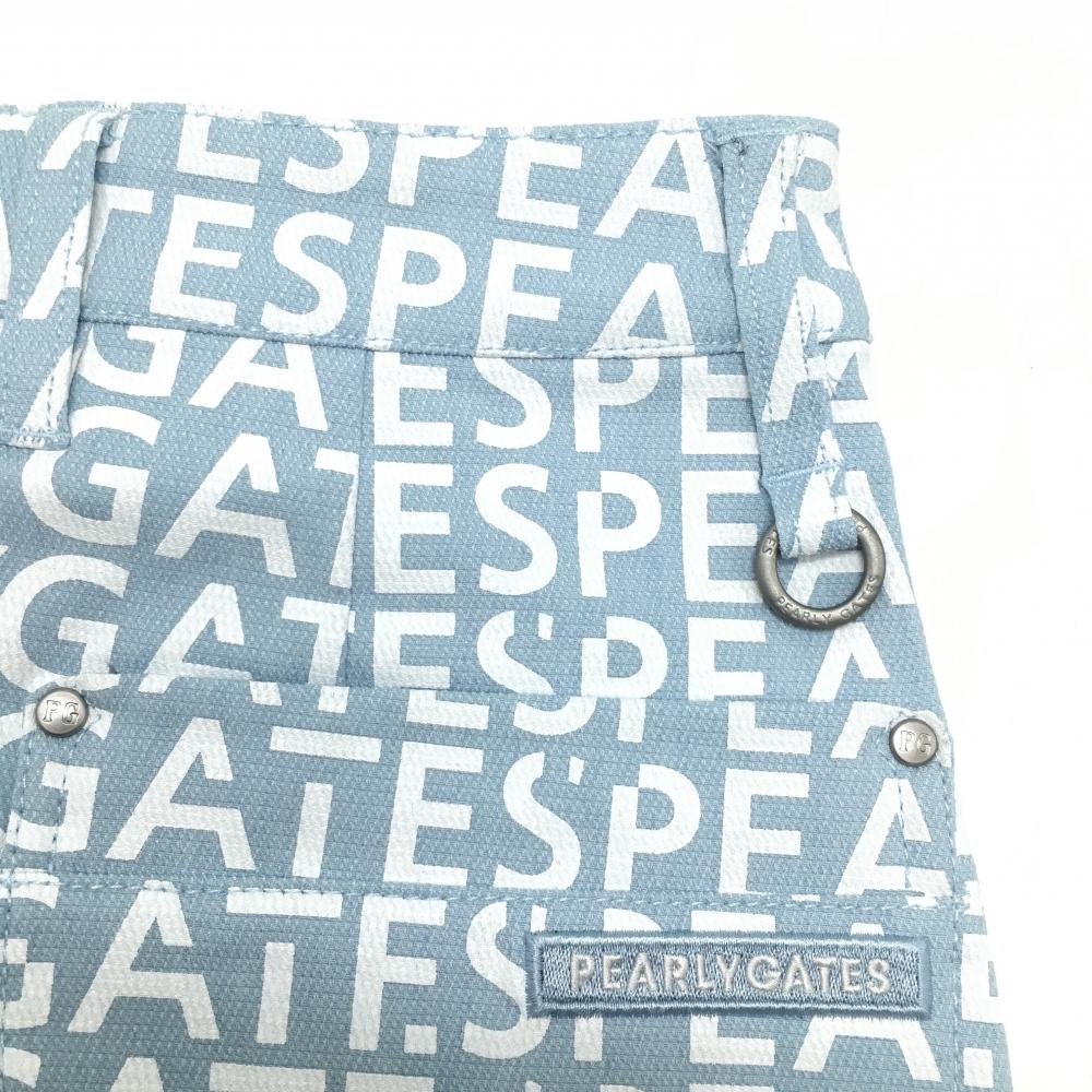 【新品】パーリーゲイツ スカート ライトブルー系×白 ロゴ総柄 ストレッチ バックファスナー レディース 0(S) ゴルフウェア PEARLY GATES