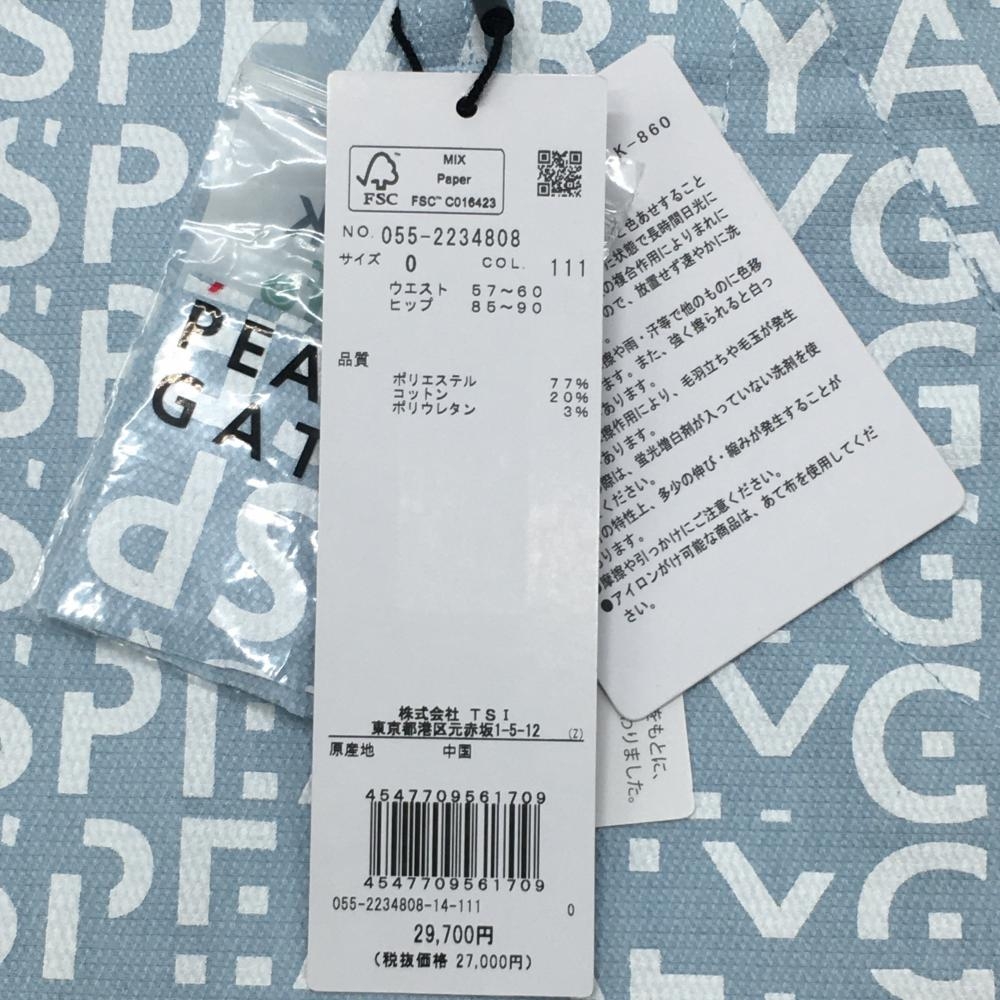 【新品】パーリーゲイツ スカート ライトブルー系×白 ロゴ総柄 ストレッチ バックファスナー レディース 0(S) ゴルフウェア PEARLY GATES