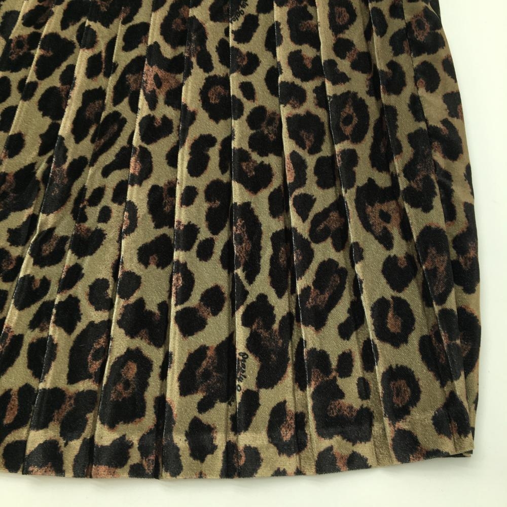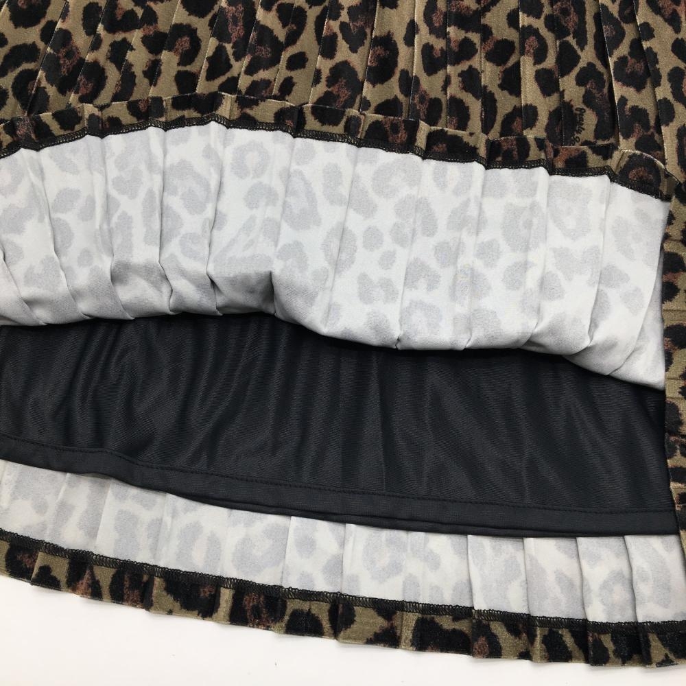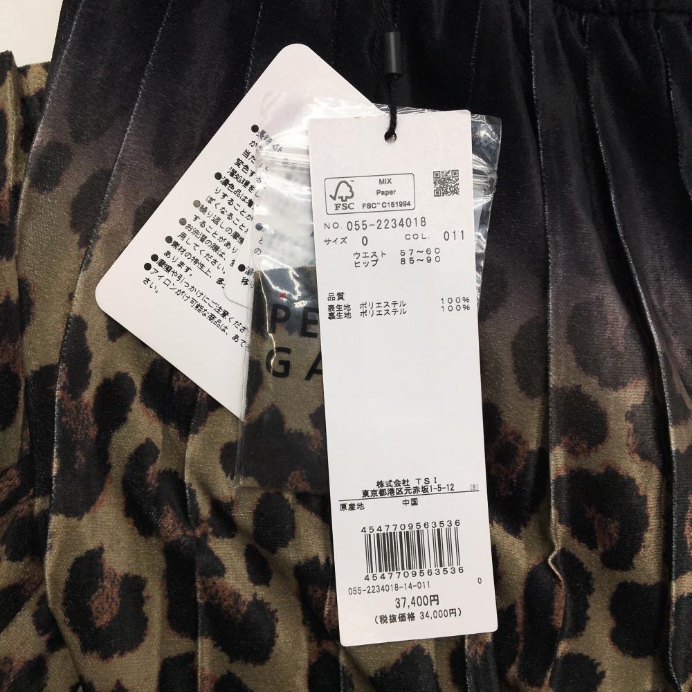 【新品】パーリーゲイツ プリーツスカート ベージュ系×黒 レオパード柄 表微起毛 ひざ丈 レディース 0(S) ゴルフウェア PEARLY GATES