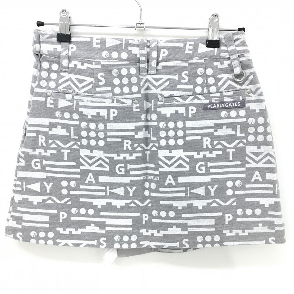 【新品】パーリーゲイツ スカート グレー×白 総柄 フリンジ ストレッチ レディース 0(S) ゴルフウェア PEARLY GATES