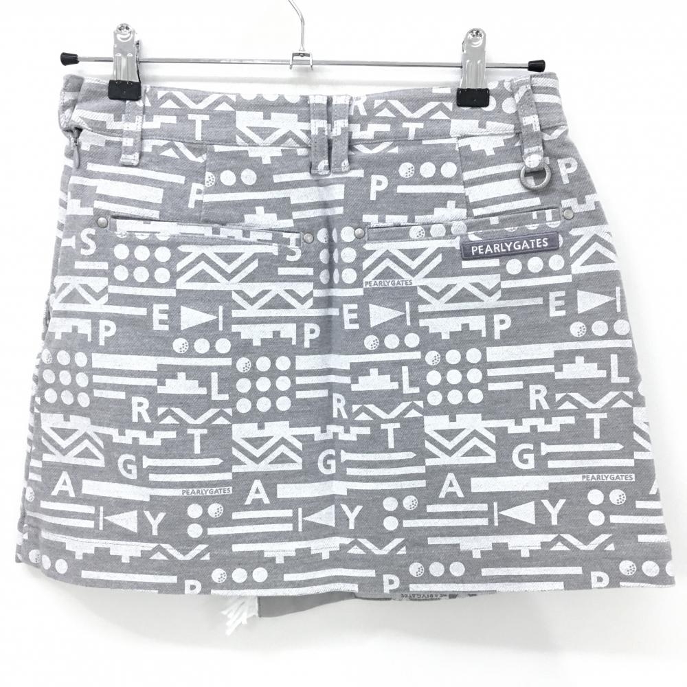 【新品】パーリーゲイツ スカート グレー×白 総柄 フリンジ ストレッチ レディース 0(S) ゴルフウェア PEARLY GATES