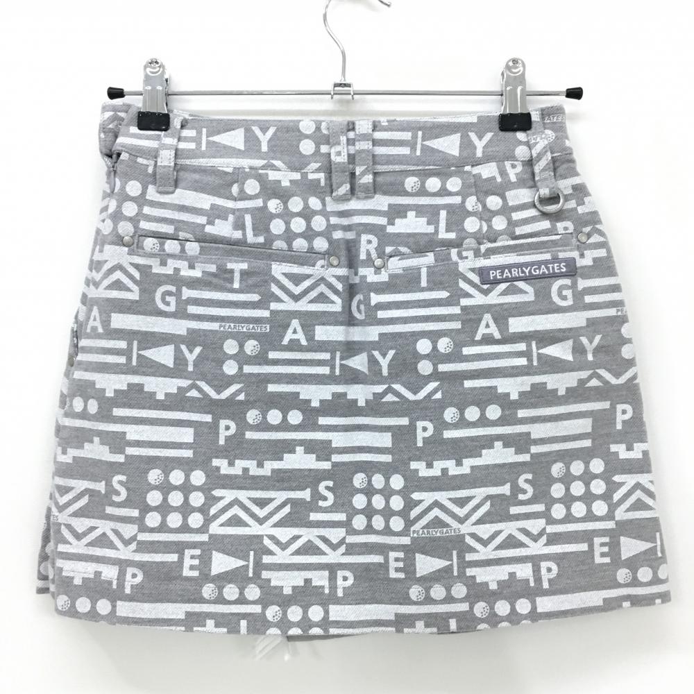 【新品】パーリーゲイツ スカート グレー×白 総柄 フリンジ ストレッチ レディース 00(XS) ゴルフウェア PEARLY GATES
