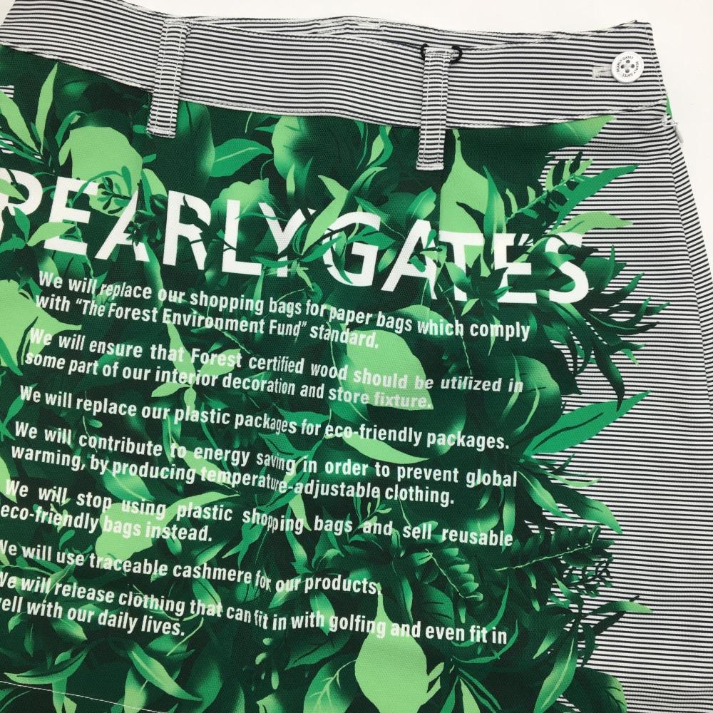 【新品】パーリーゲイツ スカート 白×ネイビー×グリーン リーフ柄 ストライプ レディース 00(XS) ゴルフウェア PEARLY GATES