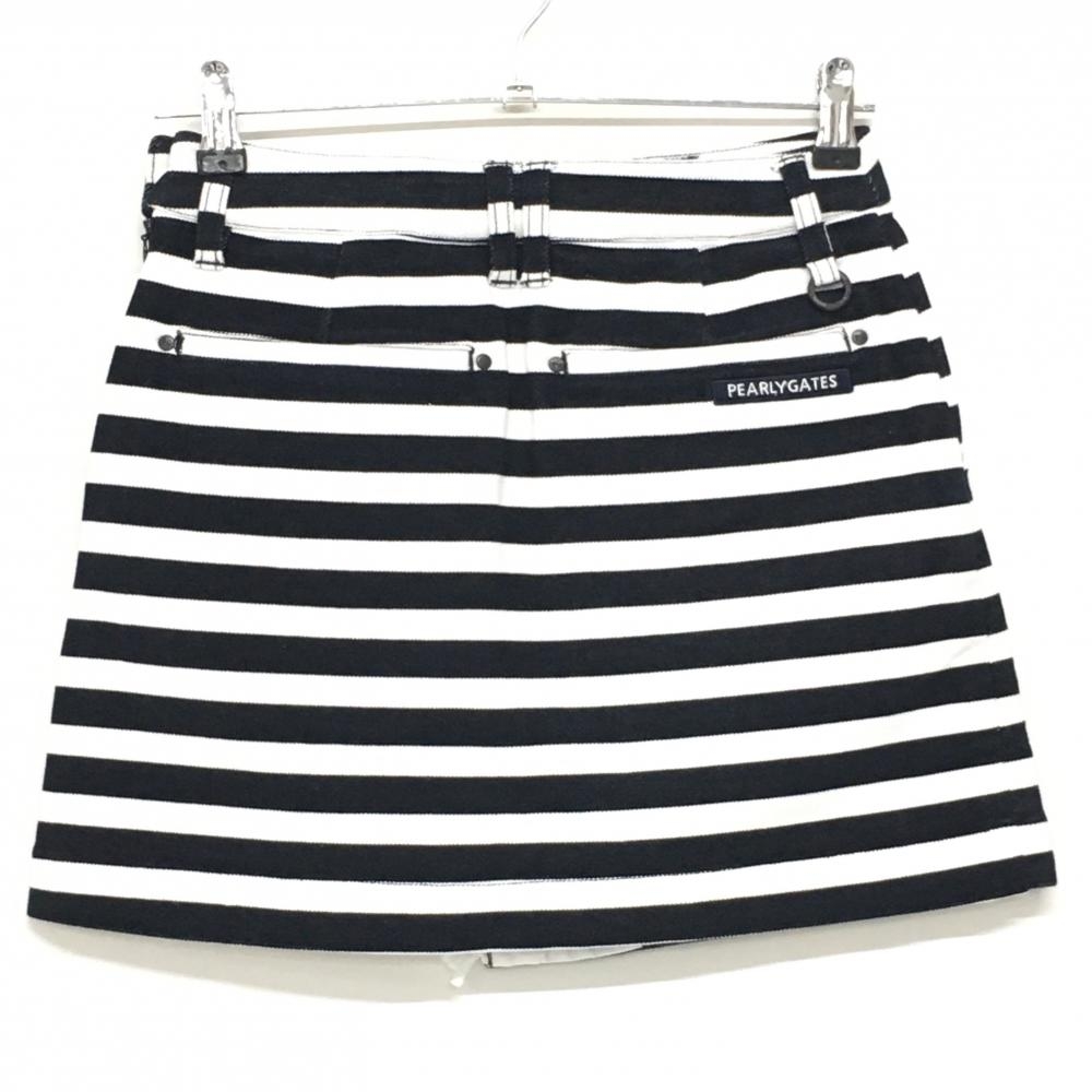 【新品】パーリーゲイツ スカート 白×ダークネイビー ボーダー フリンジ ストレッチ レディース 00(XS) ゴルフウェア PEARLY GATES