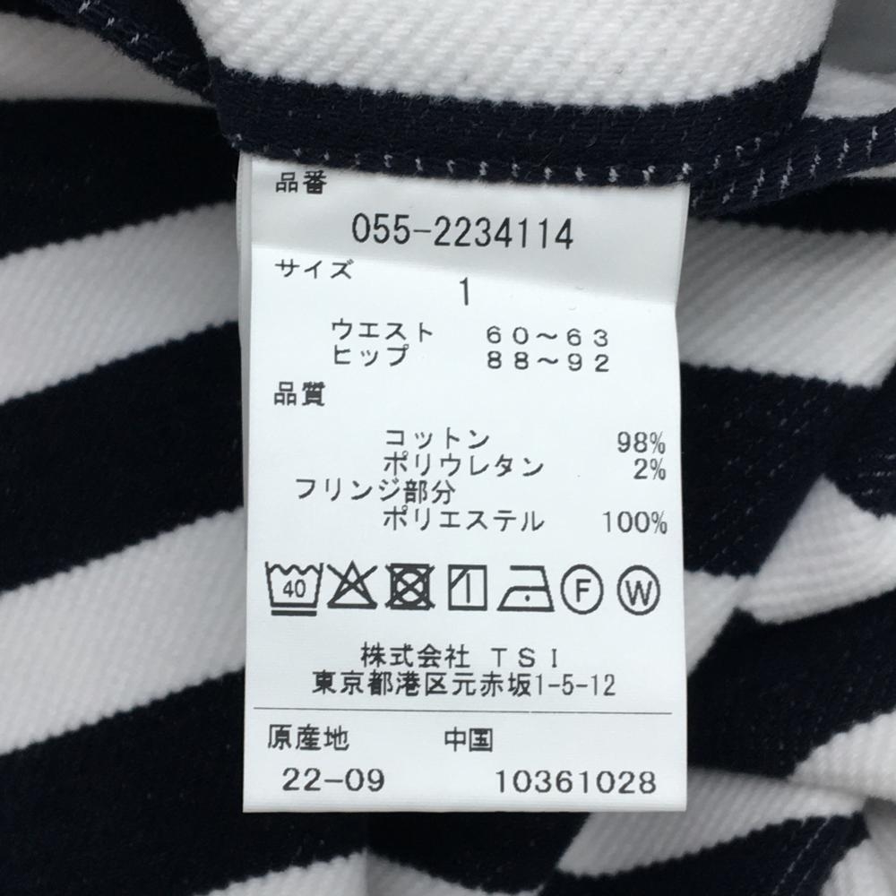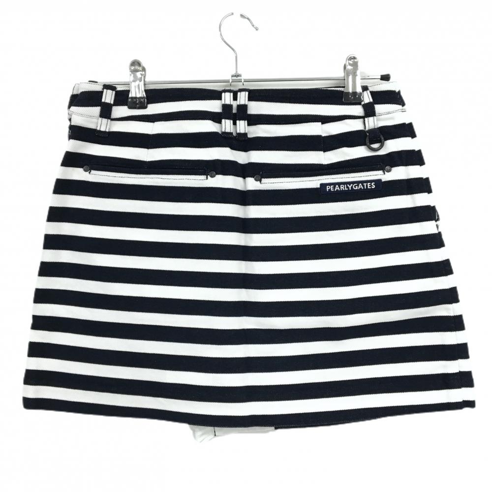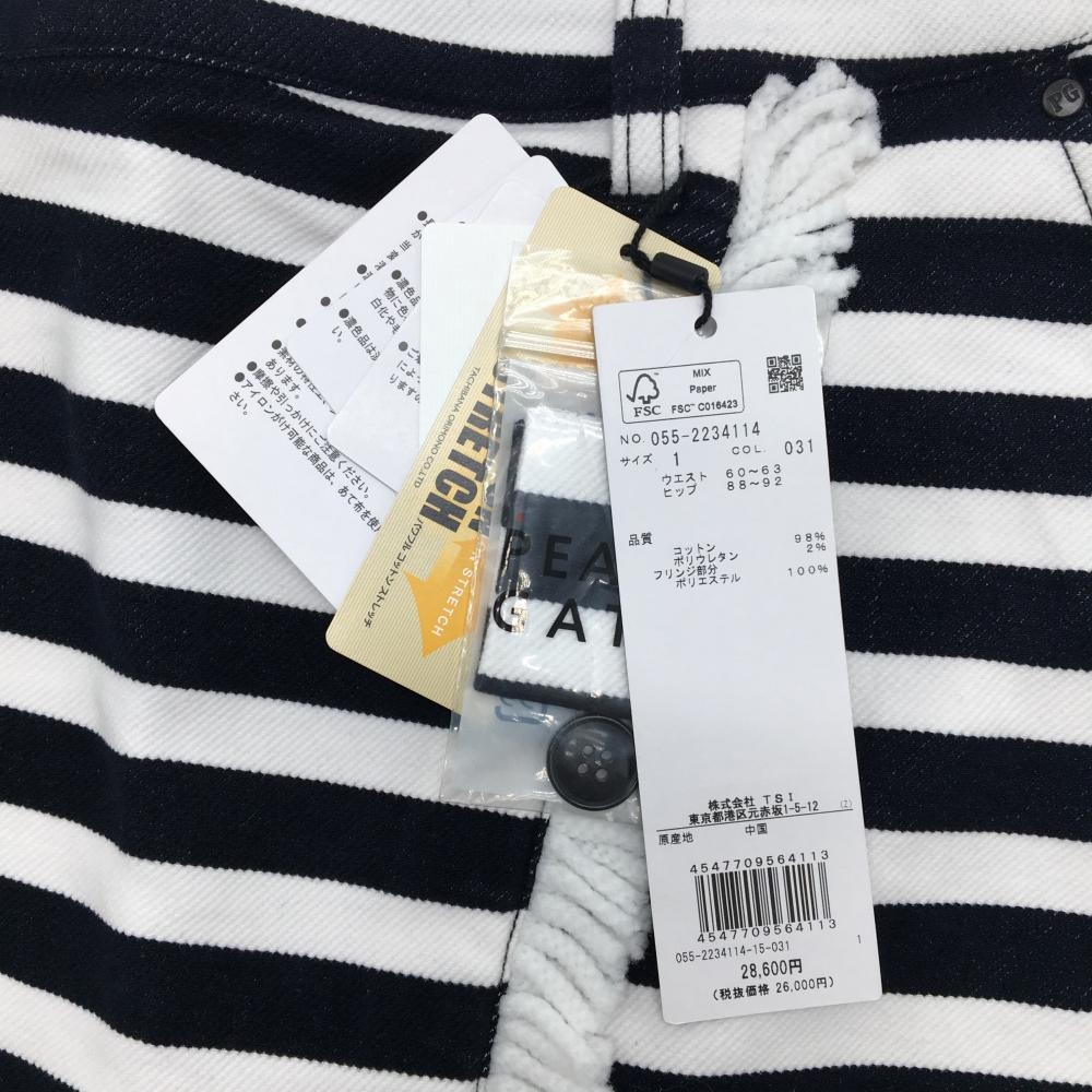【新品】パーリーゲイツ スカート ダークネイビー×白 ボーダー フリンジ ストレッチ レディース 1(M) ゴルフウェア PEARLY GATES