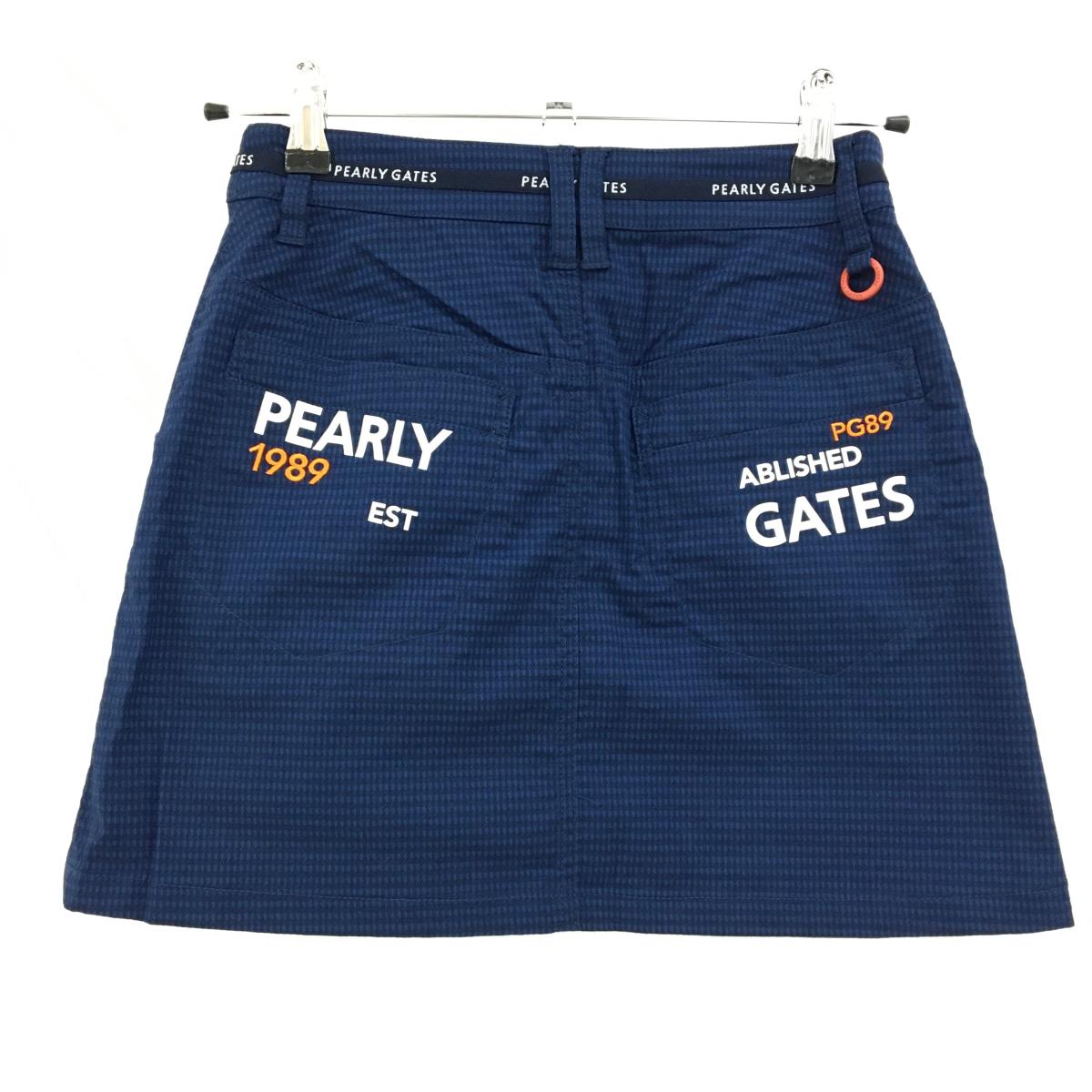 【新品】パーリーゲイツ スカート ネイビー×ダークネイビー 総柄 ウエストロゴライン レディース 00(XS) ゴルフウェア PEARLY GATES