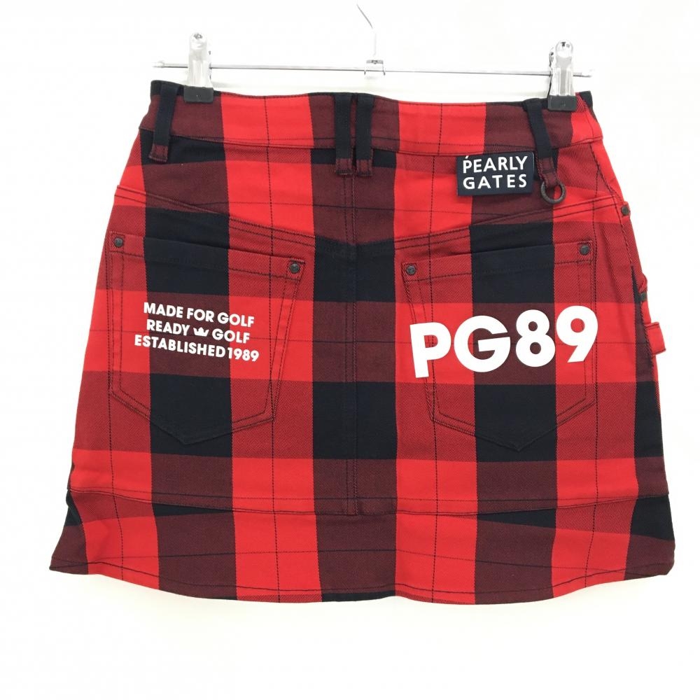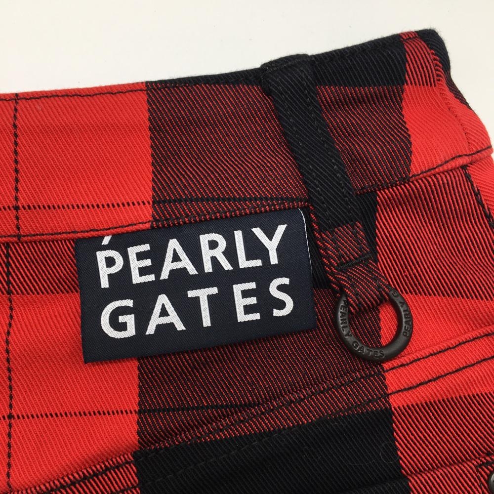 【新品】パーリーゲイツ スカート レッド×ダークネイビー チェック柄 ロゴ白 ストレッチ レディース 0(S) ゴルフウェア PEARLY GATES