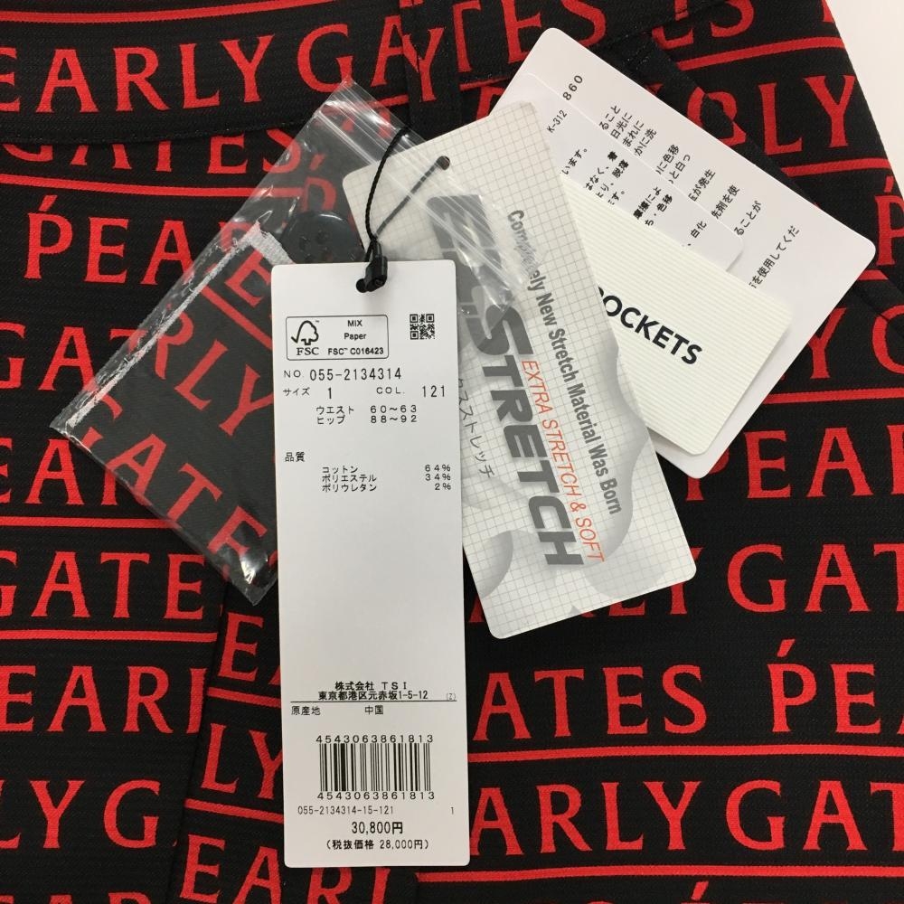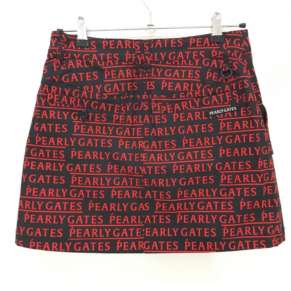 【新品】パーリーゲイツ スカート 黒×レッド ロゴ総柄 刺しゅう白 レディース 1(M) ゴルフウェア PEARLY GATES