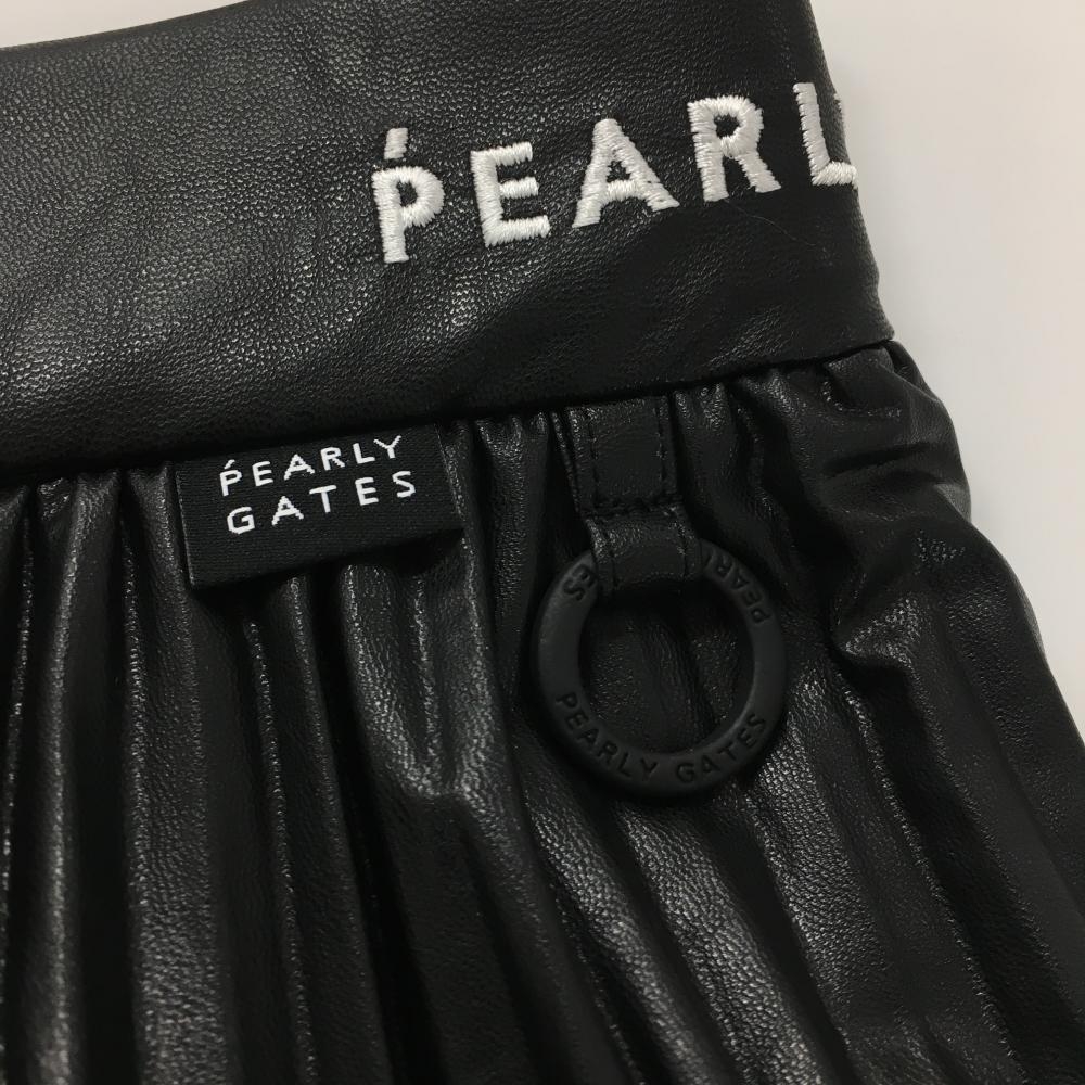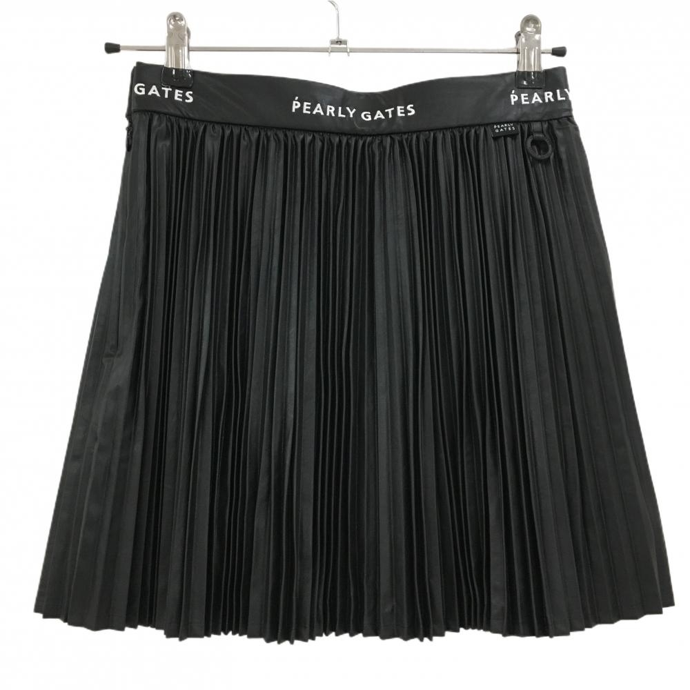 【新品】パーリーゲイツ プリーツスカート 黒×白 合皮 ウエストロゴ 裏地付き レディース 0(S) ゴルフウェア PEARLY GATES