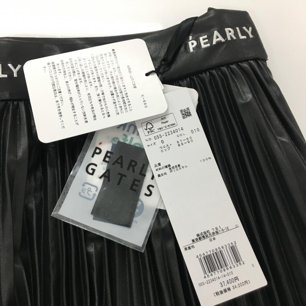 【新品】パーリーゲイツ プリーツスカート 黒×白 合皮 ウエストロゴ 裏地付き レディース 0(S) ゴルフウェア PEARLY GATES