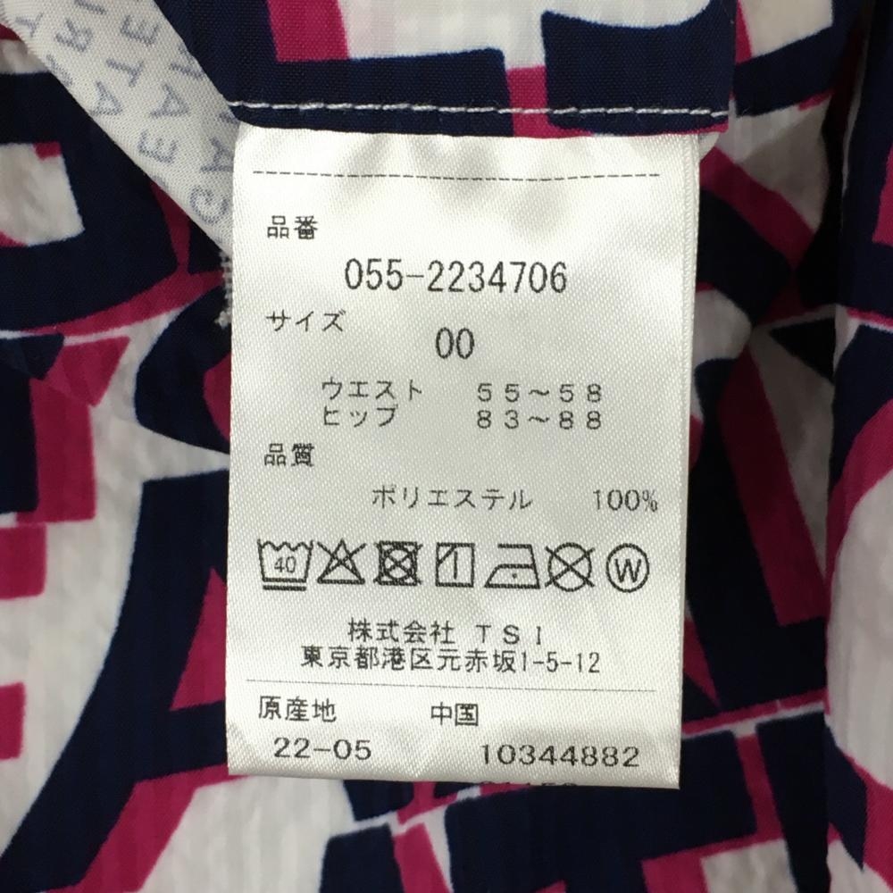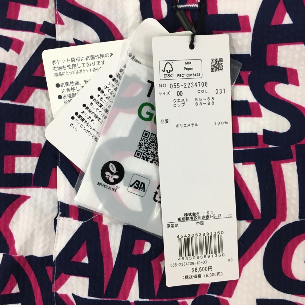 【新品】パーリーゲイツ スカート 白×ネイビー ロゴ英字総柄 サッカー生地 レディース 00(XS) ゴルフウェア PEARLY GATES