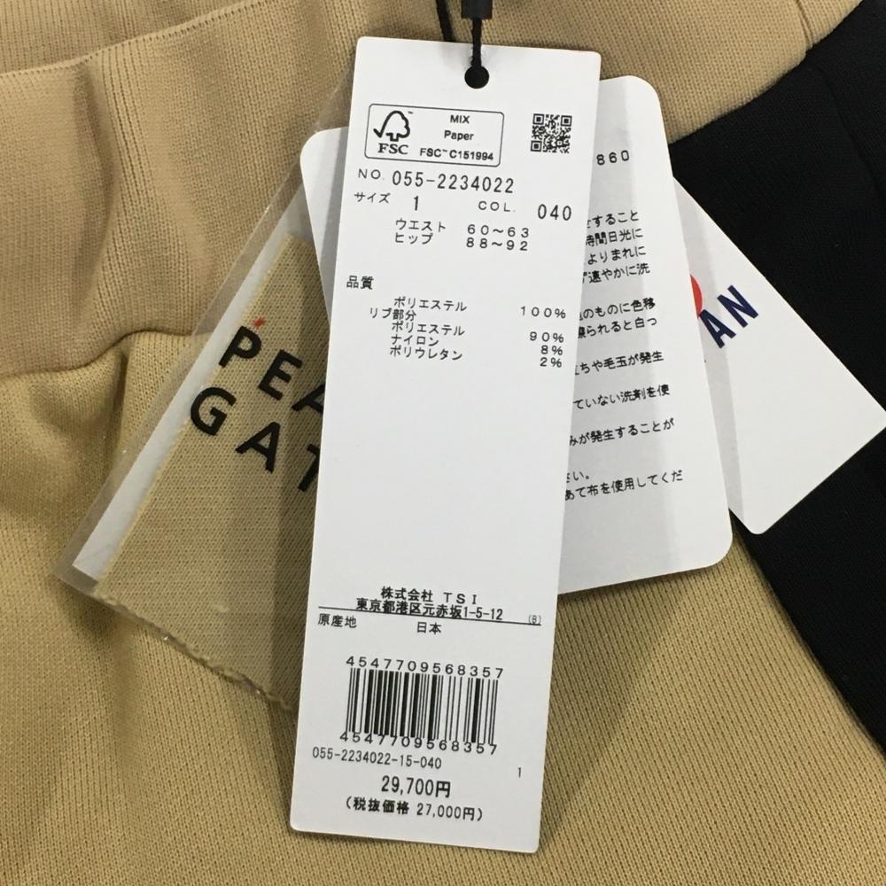 【新品】パーリーゲイツ スカート ベージュ×黒 一部レオパード柄 スウェット生地 ひざ丈 レディース 1(M) ゴルフウェア PEARLY GATES