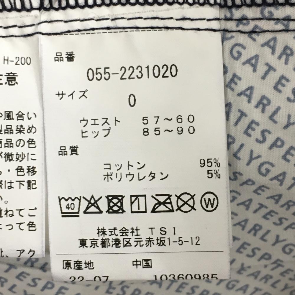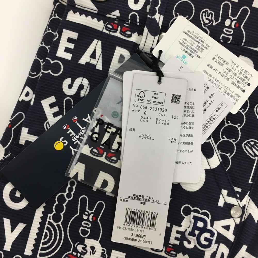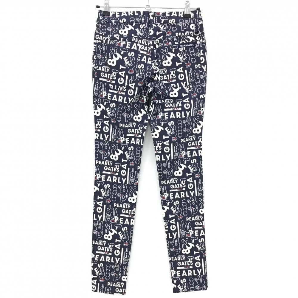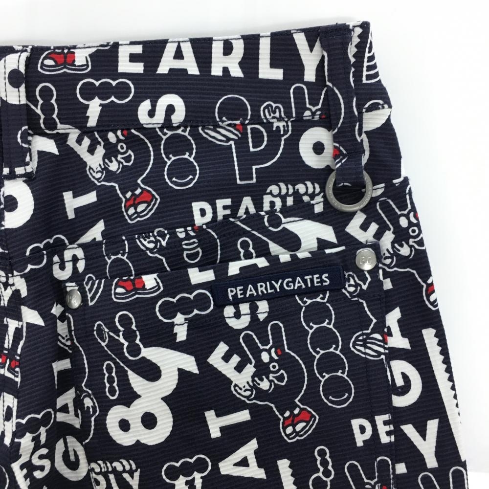 【新品】パーリーゲイツ パンツ ネイビー×白 ロゴ総柄 どうしちゃったPG ボーダー織生地 レディース 0(S) ゴルフウェア PEARLY GATES