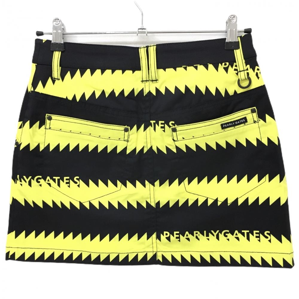 【新品】パーリーゲイツ スカート 黒×イエロー ギザギザボーダー フロントフェイクボタン レディース 0(S) ゴルフウェア PEARLY GATES