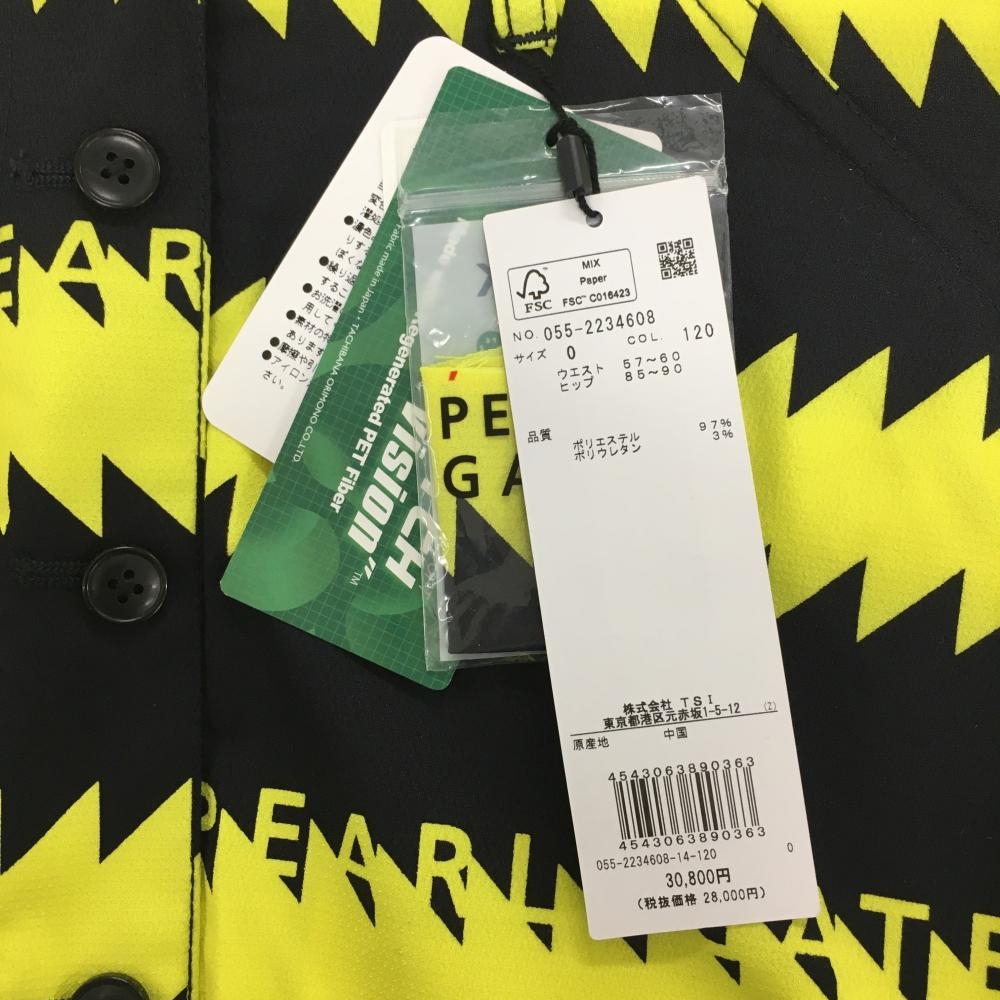 【新品】パーリーゲイツ スカート 黒×イエロー ギザギザボーダー フロントフェイクボタン レディース 0(S) ゴルフウェア PEARLY GATES