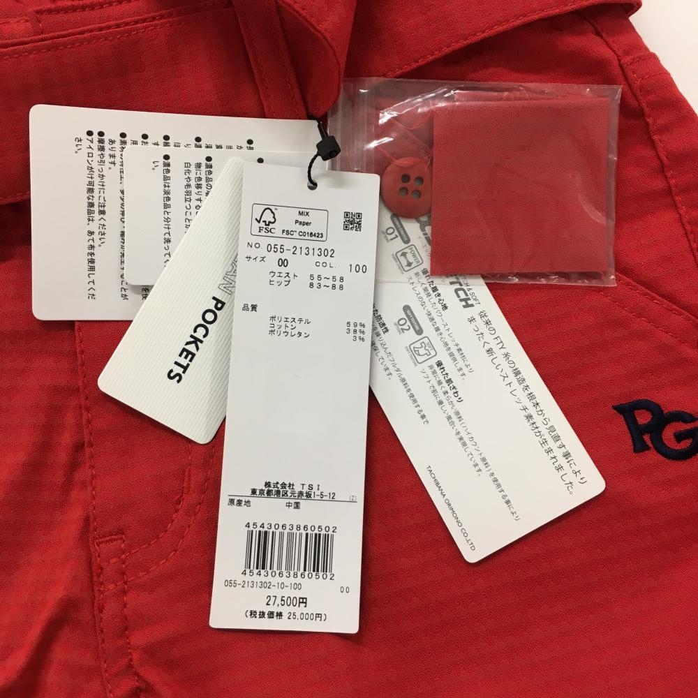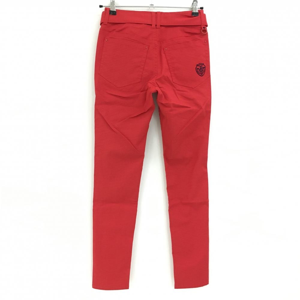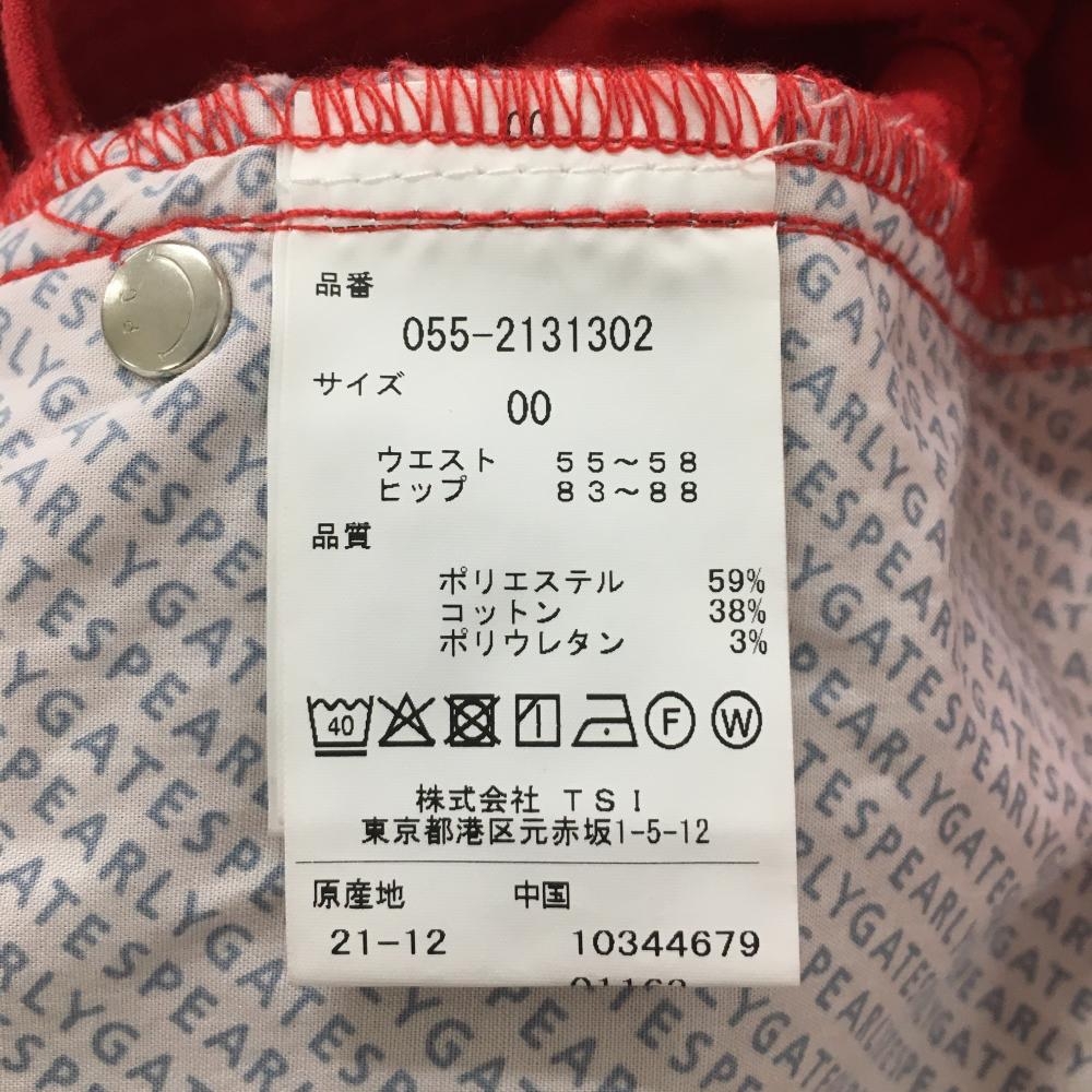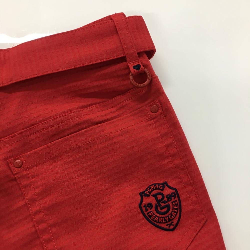【新品】パーリーゲイツ パンツ レッド 総柄織生地 共布ベルト付き ストレッチ レディース 00(XS) ゴルフウェア PEARLY GATES