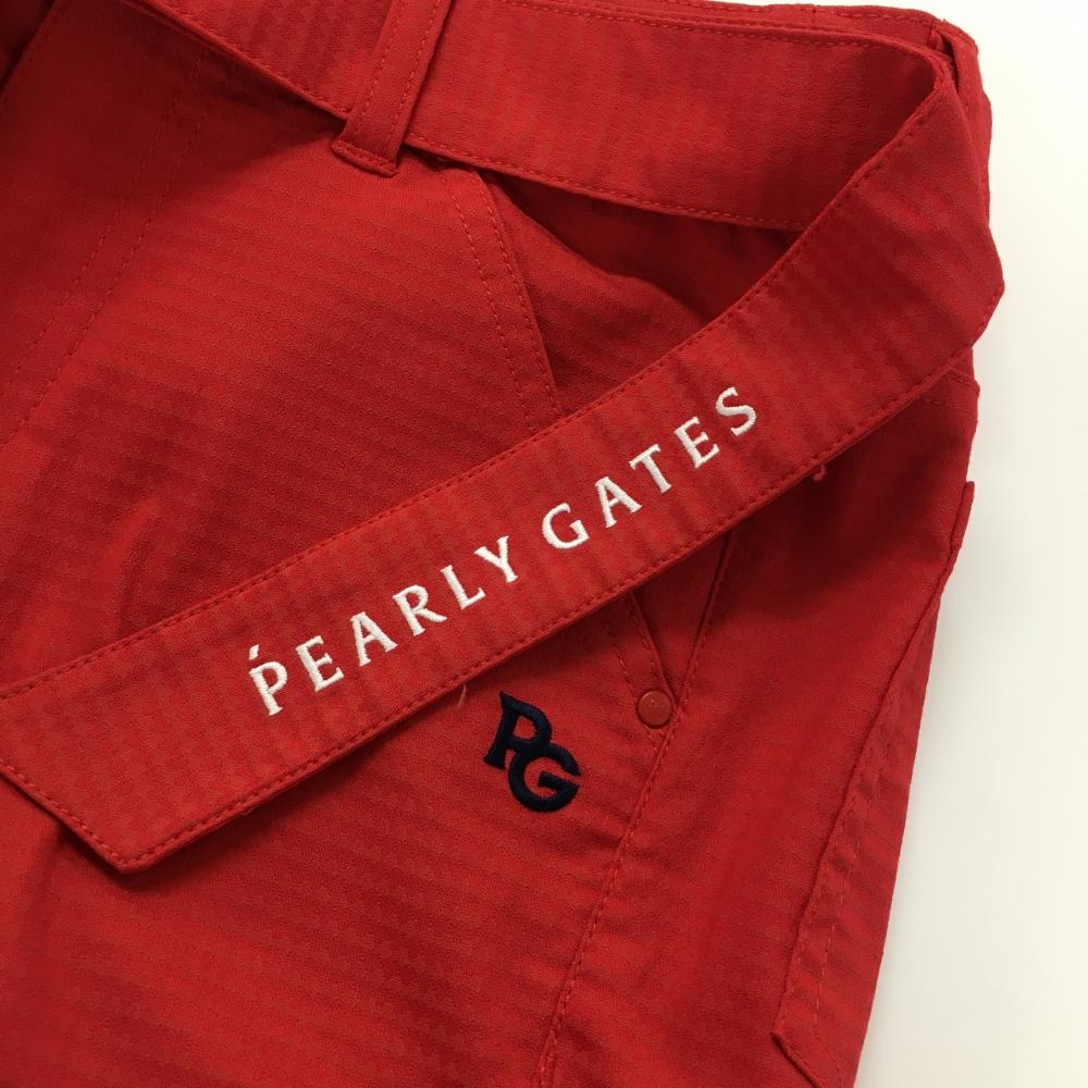 【新品】パーリーゲイツ パンツ レッド 総柄織生地 共布ベルト付き ストレッチ レディース 00(XS) ゴルフウェア PEARLY GATES