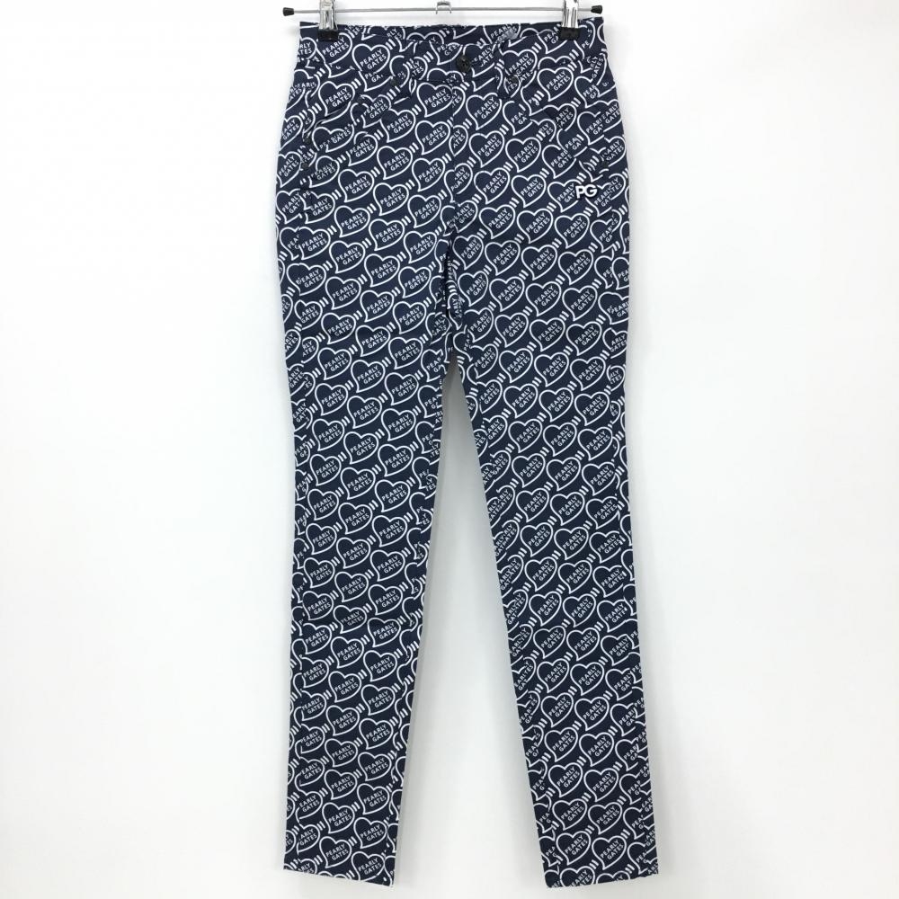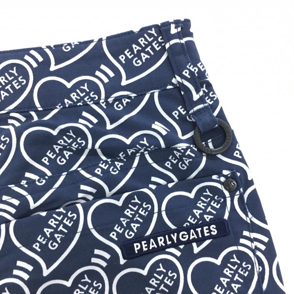 【新品】パーリーゲイツ パンツ ネイビー×白 ハートロゴ総柄 ストレッチ レディース 00(XS) ゴルフウェア PEARLY GATES