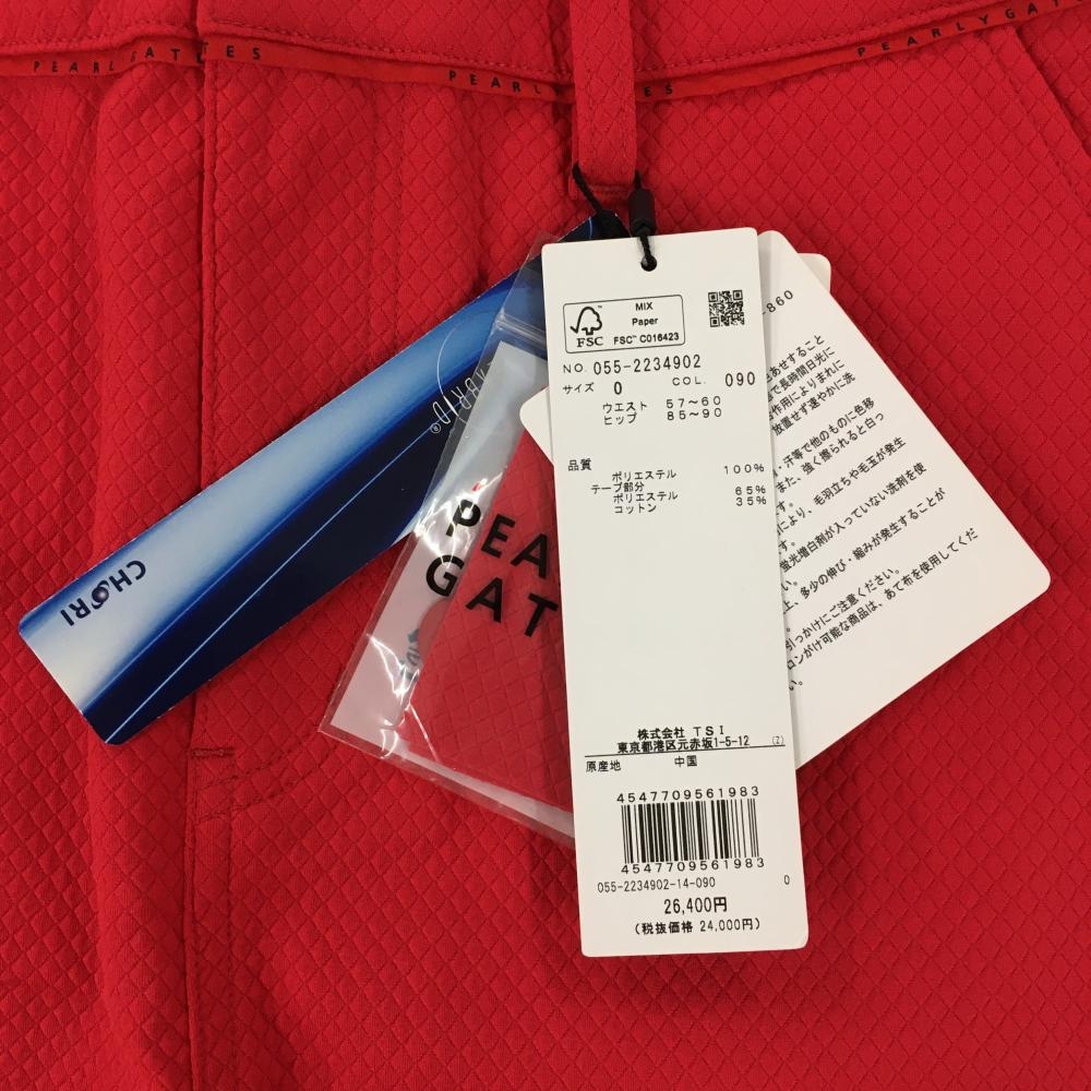 【新品】パーリーゲイツ スカート レッド ダイヤ柄織生地 ロゴ白 レディース 0(S) ゴルフウェア PEARLY GATES