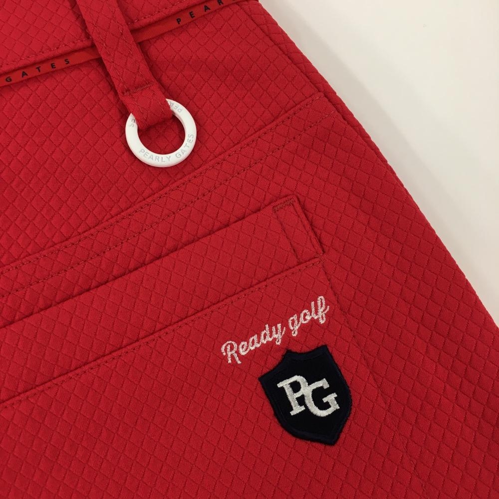 【新品】パーリーゲイツ スカート レッド ダイヤ柄織生地 ロゴ白 レディース 00(XS) ゴルフウェア PEARLY GATES
