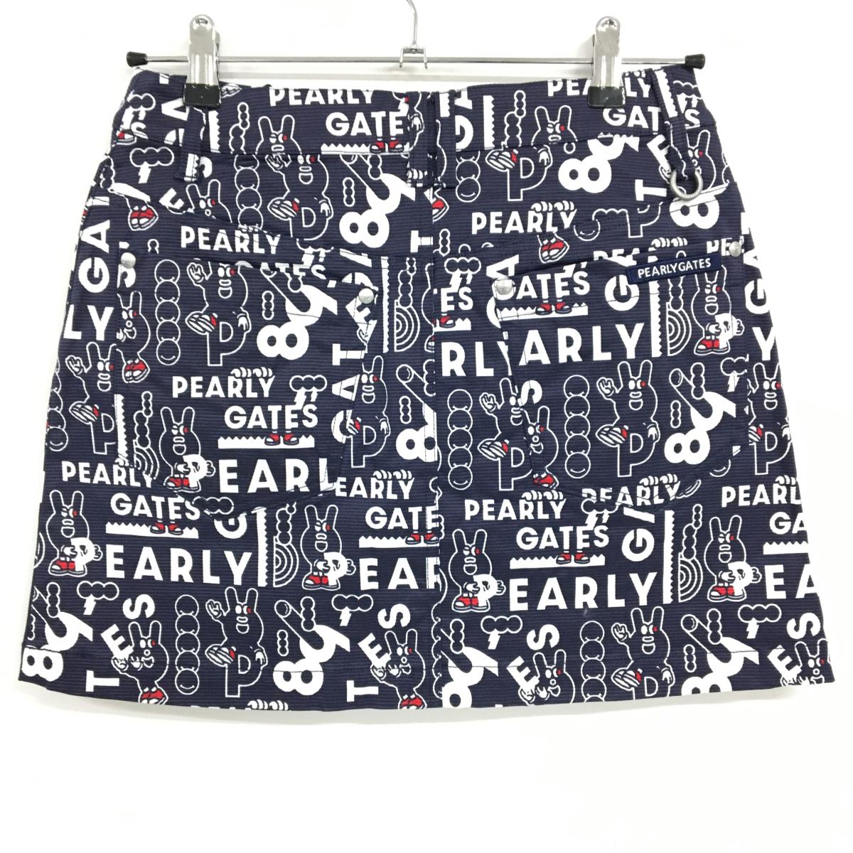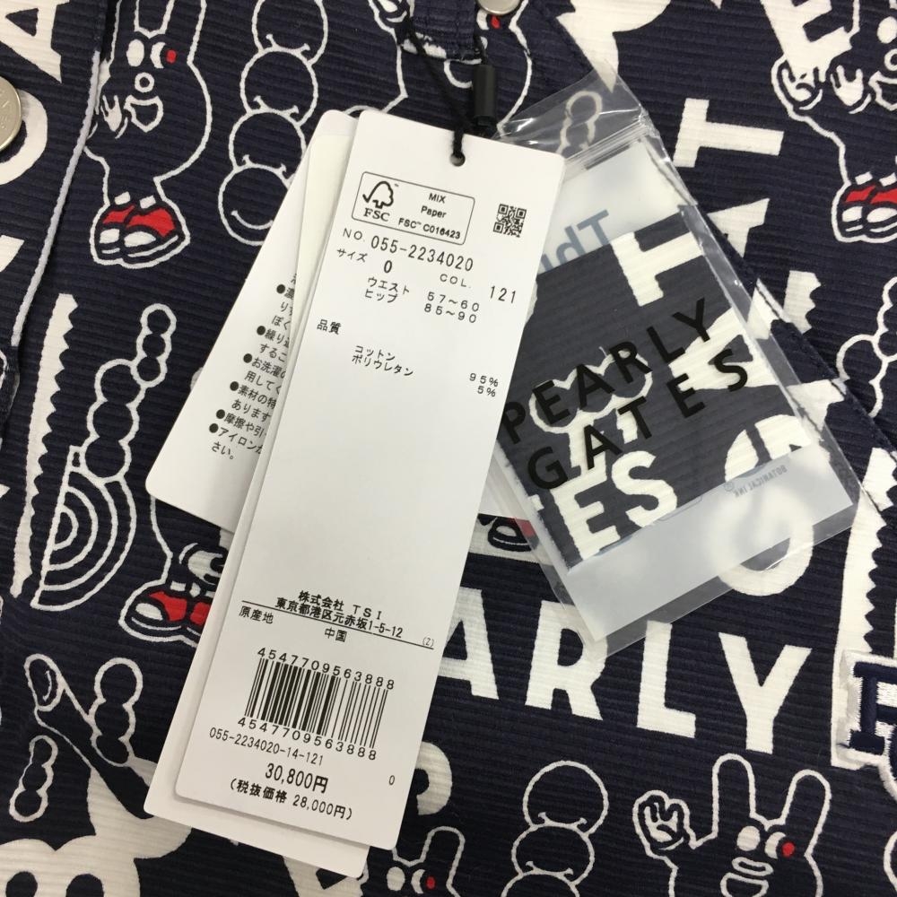 【新品】パーリーゲイツ スカート ネイビー×白 ロゴ総柄 どうしちゃったPG レディース 0(S) ゴルフウェア PEARLY GATES