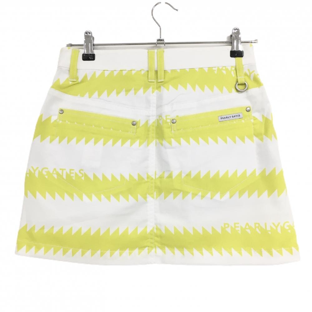 【新品】パーリーゲイツ スカート 白×イエロー ギザギザボーダー フロントフェイクボタン レディース 00(XS) ゴルフウェア PEARLY GATES