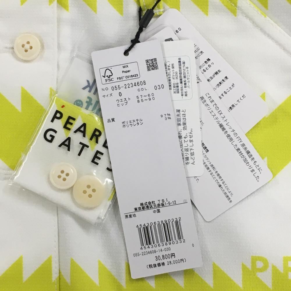 【新品】パーリーゲイツ スカート 白×イエロー ギザギザボーダー フロントフェイクボタン レディース 0(S) ゴルフウェア PEARLY GATES