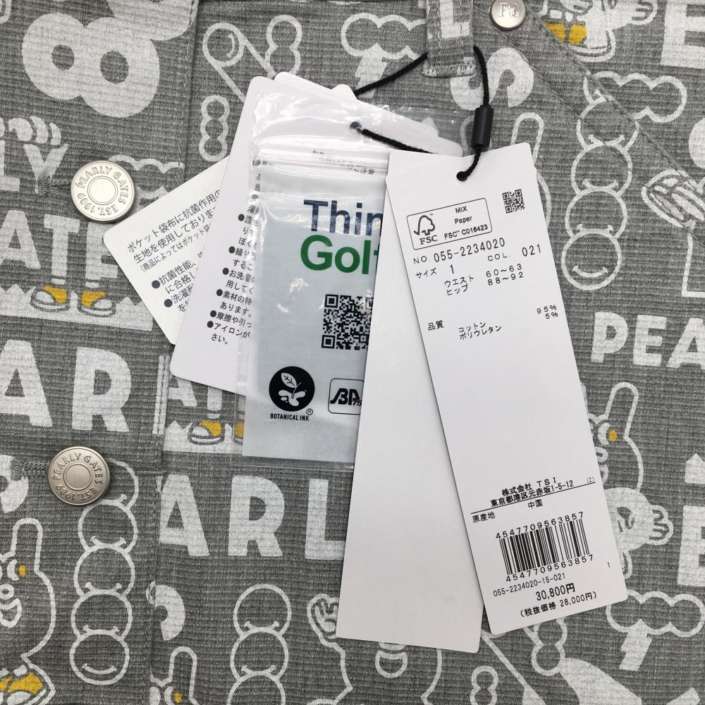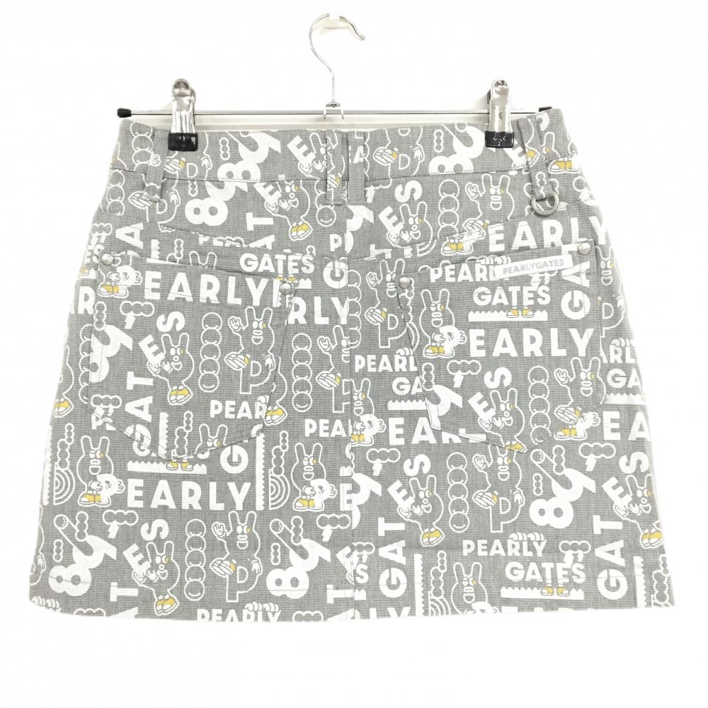 【新品】パーリーゲイツ スカート グレー×白 ロゴ総柄 どうしちゃったPG レディース 1(M) ゴルフウェア PEARLY GATES