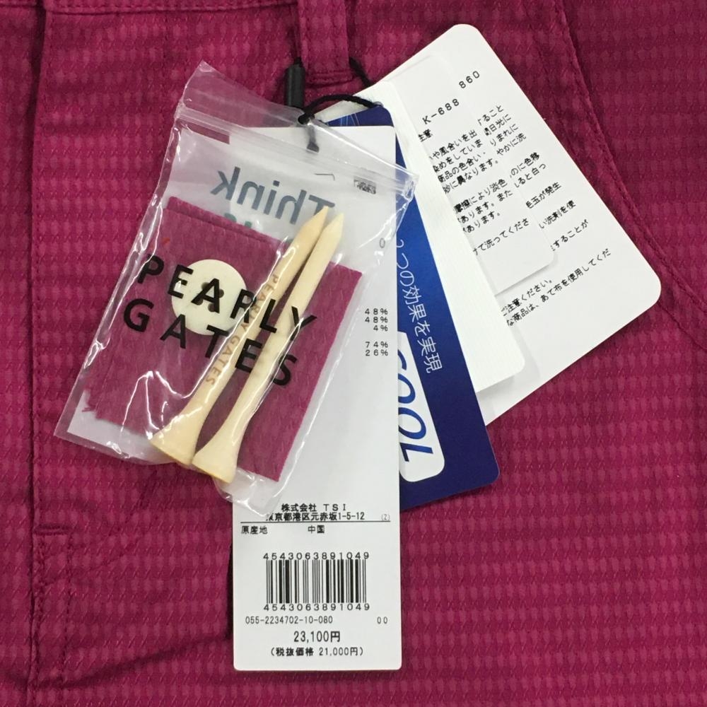【新品】パーリーゲイツ スカート パープルピンク 総柄織生地 ベルト部ロゴラインティー付き レディース 00(XS) ゴルフウェア PEARLY GATES