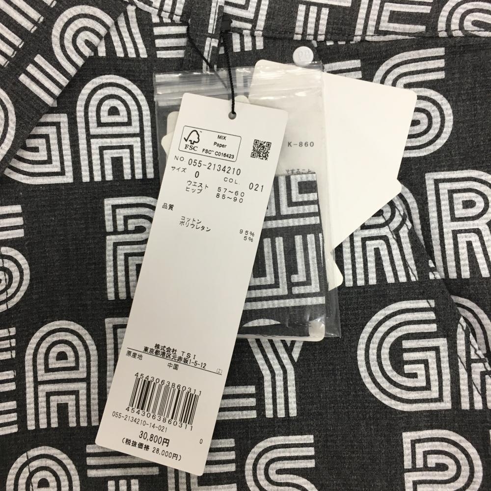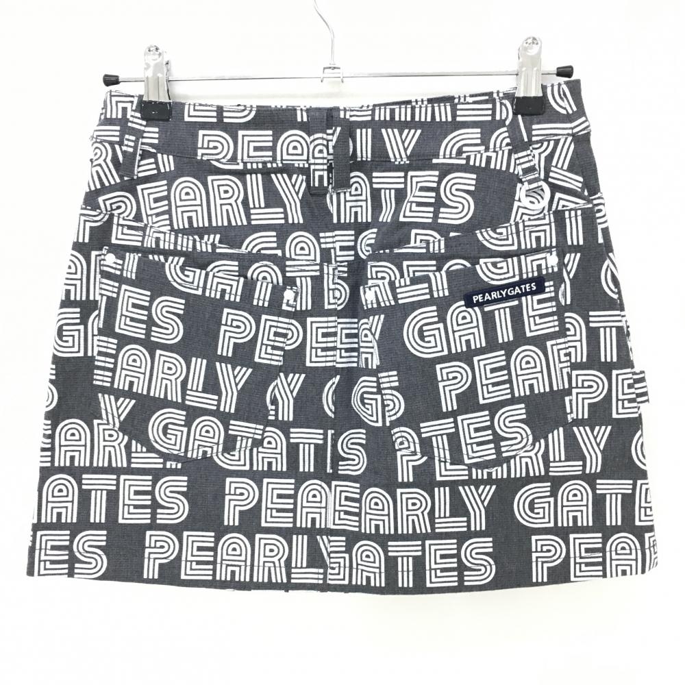【新品】パーリーゲイツ スカート ダークグレー×白 英字ロゴ総柄 レディース 0(S) ゴルフウェア PEARLY GATES