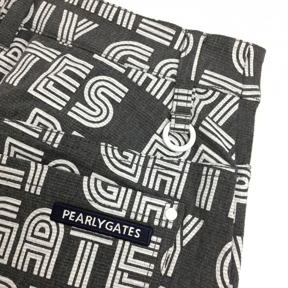 【新品】パーリーゲイツ スカート ダークグレー×白 英字ロゴ総柄 レディース 0(S) ゴルフウェア PEARLY GATES