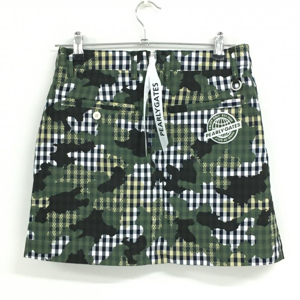 【新品】パーリーゲイツ スカート 白×ネイビー×カーキ カモフラ調 迷彩 チェック レディース 1(M) ゴルフウェア PEARLY GATES