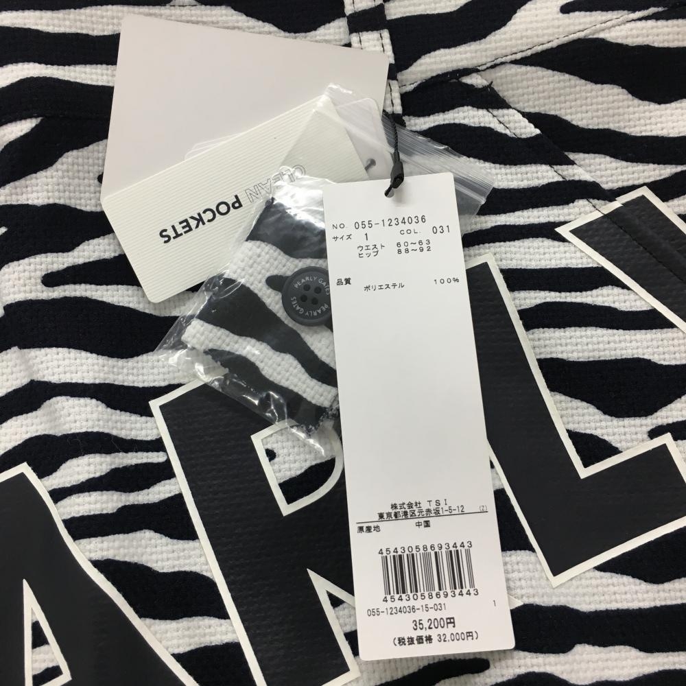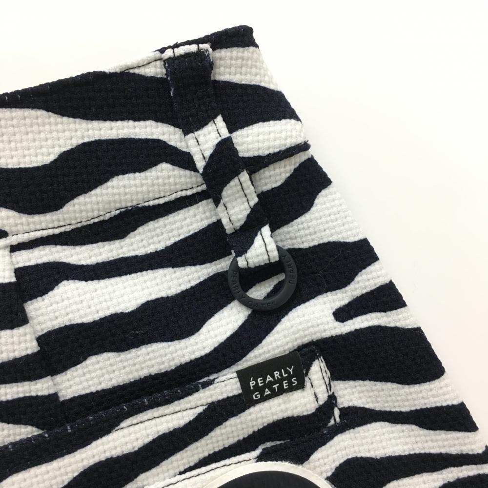 【新品】パーリーゲイツ スカート 白×黒 ゼブラ柄 織生地 ビッグロゴプリント レディース 1(M) ゴルフウェア PEARLY GATES