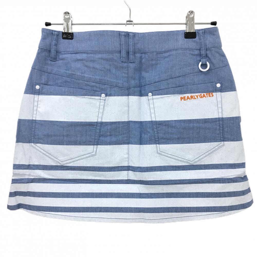 【新品】パーリーゲイツ スカート ブルー系×白 ボーダー ロゴオレンジ レディース 1(M) ゴルフウェア PEARLY GATES