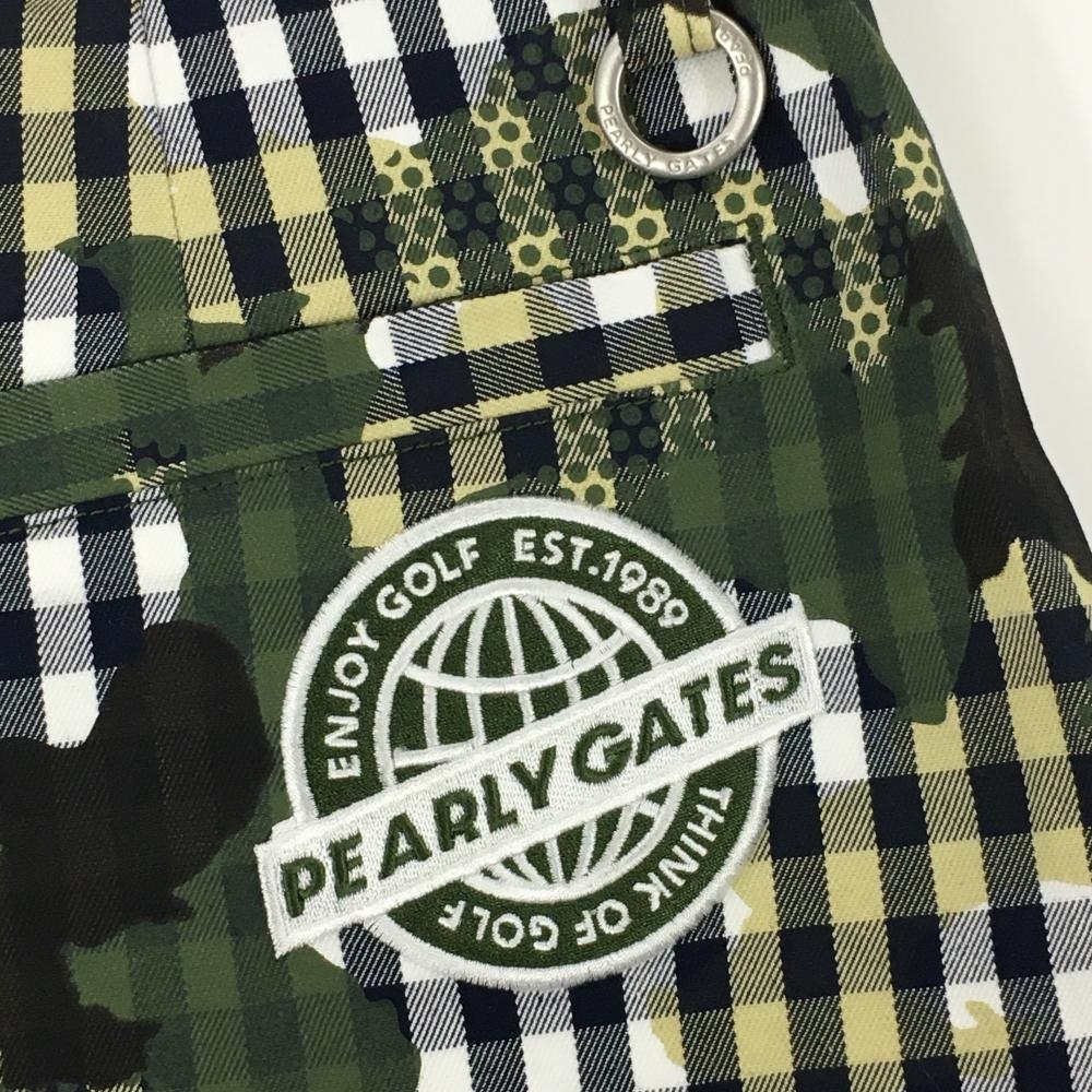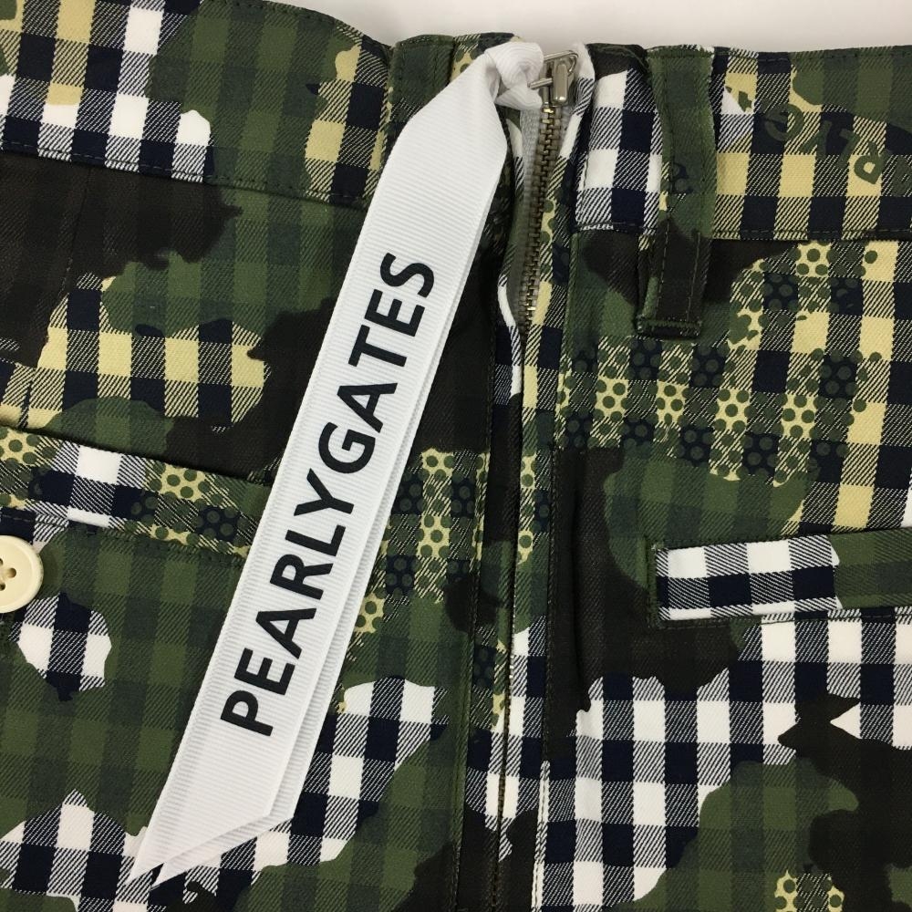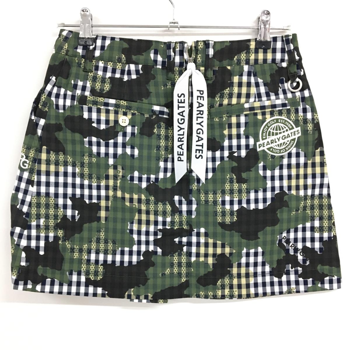 【新品】パーリーゲイツ スカート 白×カーキ チェック カモフラ調 迷彩 レディース 0(S) ゴルフウェア PEARLY GATES