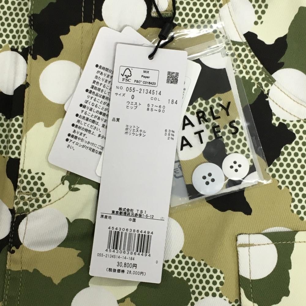 【新品】パーリーゲイツ カーゴスカート カーキ×白 カモフラ調 ドット 迷彩 レディース 0(S) ゴルフウェア PEARLY GATES