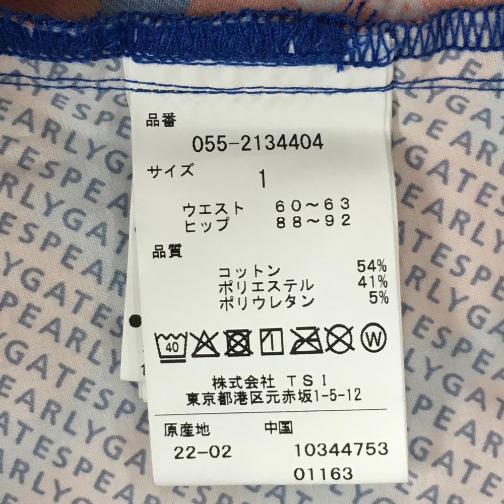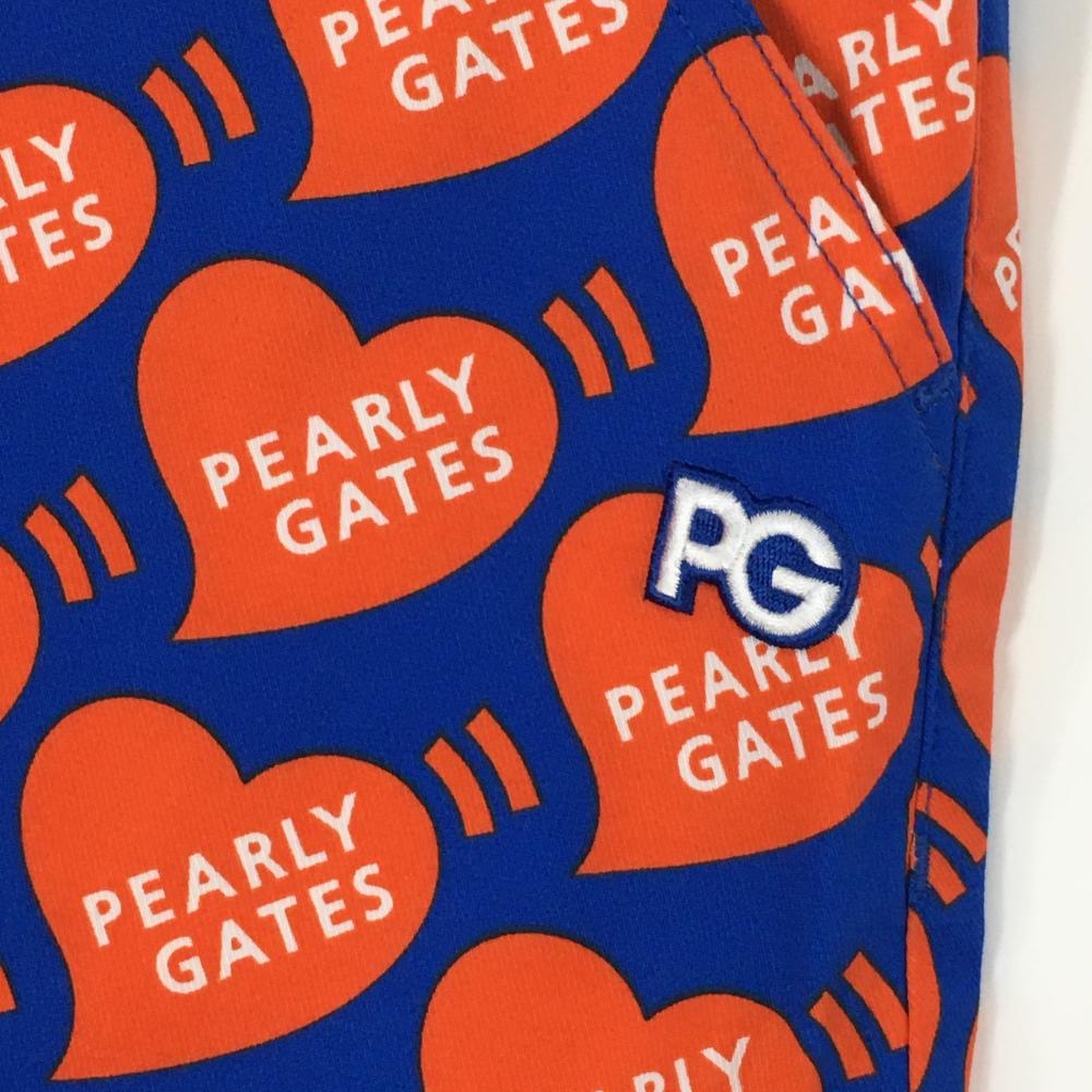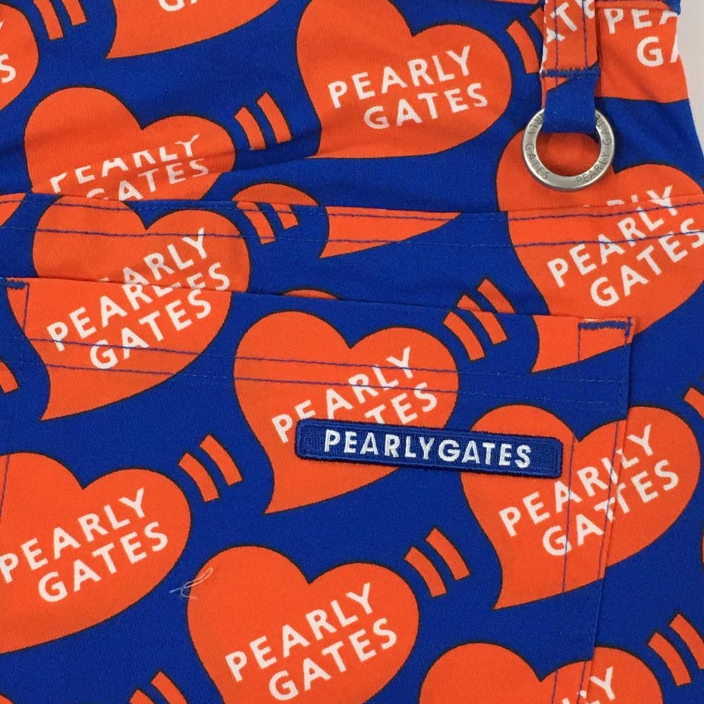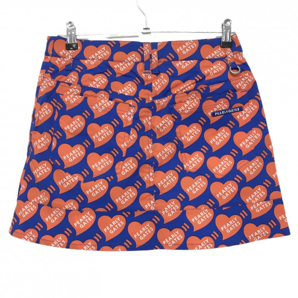 【新品】パーリーゲイツ スカート ブルー×オレンジ ハートロゴ総柄 フロントフェイクボタン レディース 1(M) ゴルフウェア PEARLY GATES