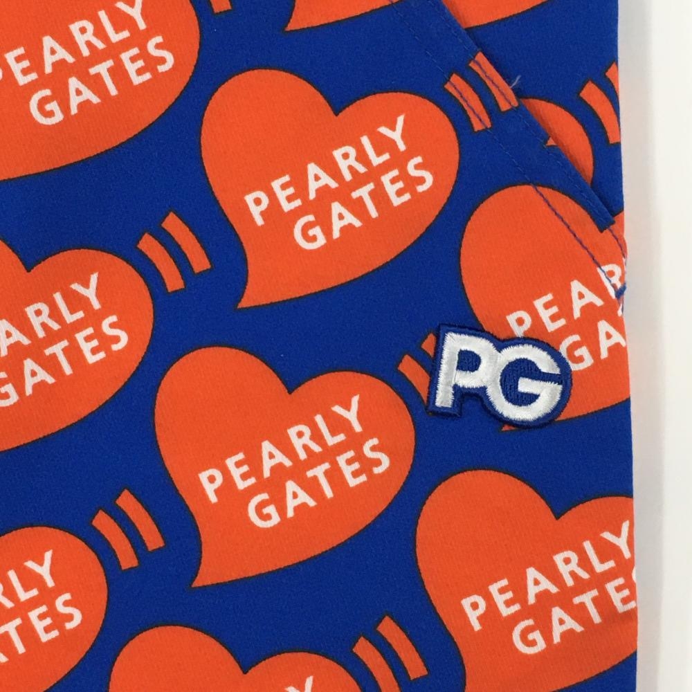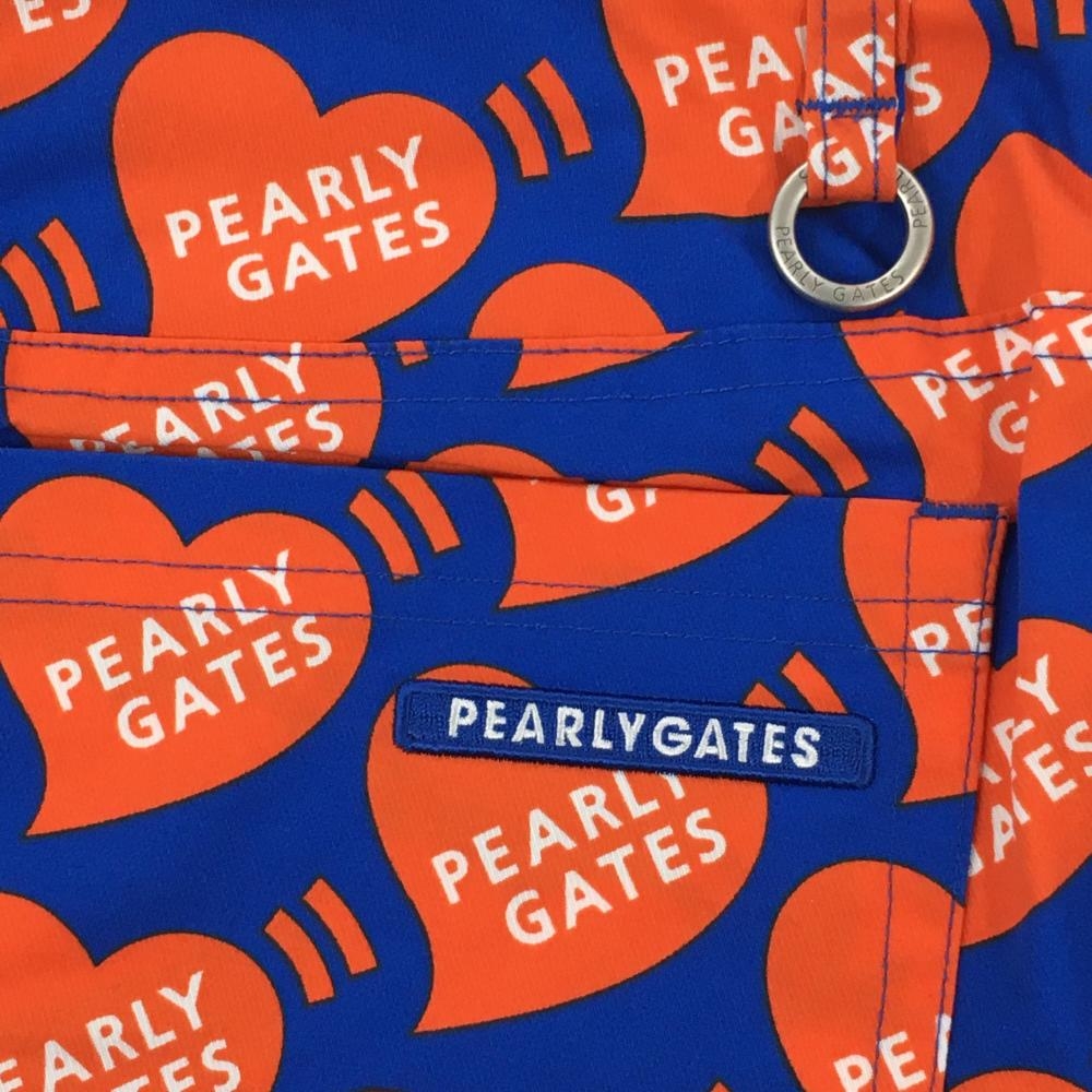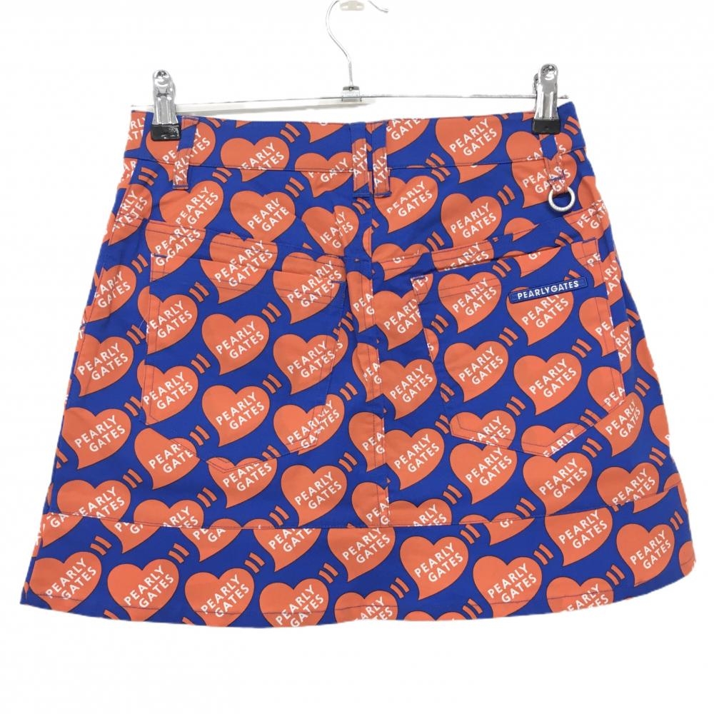 【新品】パーリーゲイツ スカート ブルー×オレンジ ハートロゴ総柄 フロントフェイクボタン レディース 0(S) ゴルフウェア PEARLY GATES