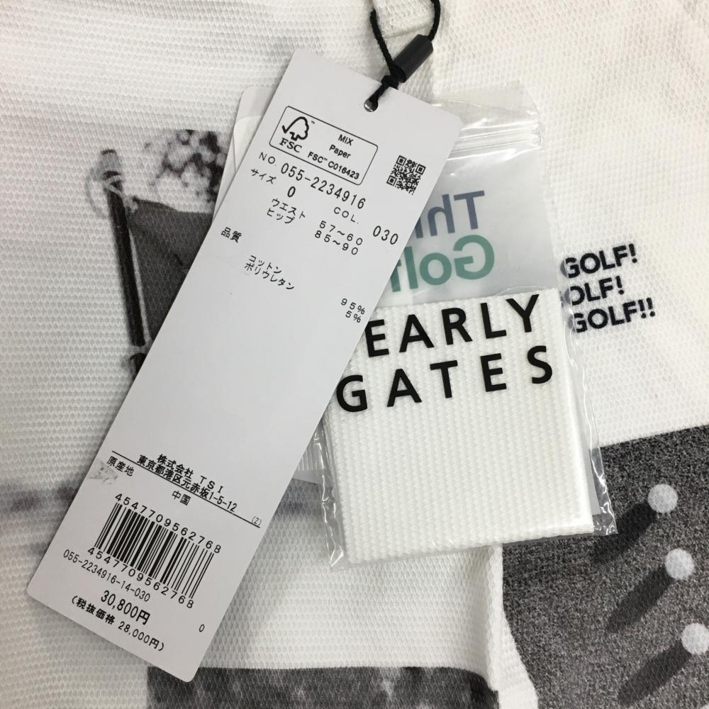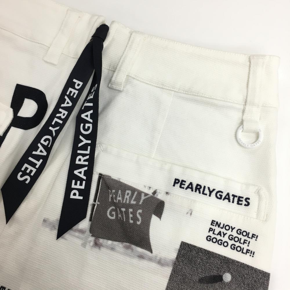 【新品】パーリーゲイツ スカート 白×グレー 写真風 PGニコちゃん バックファスナーリボン レディース 0(S) ゴルフウェア PEARLY GATES