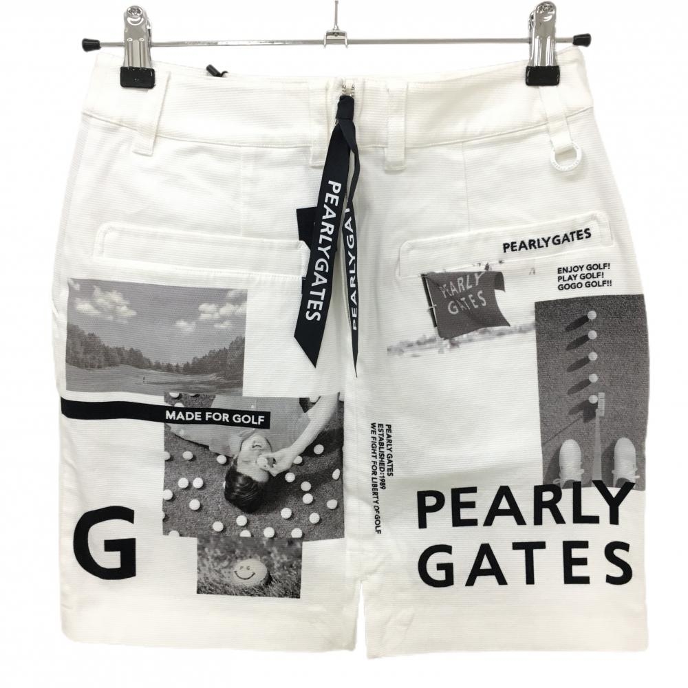 【新品】パーリーゲイツ スカート 白×グレー 写真風 PGニコちゃん バックファスナーリボン レディース 0(S) ゴルフウェア PEARLY GATES