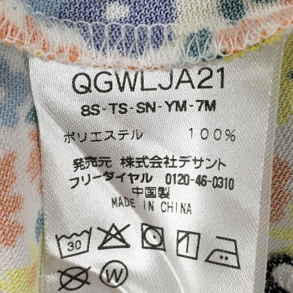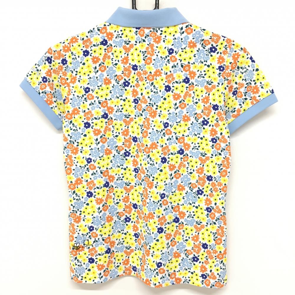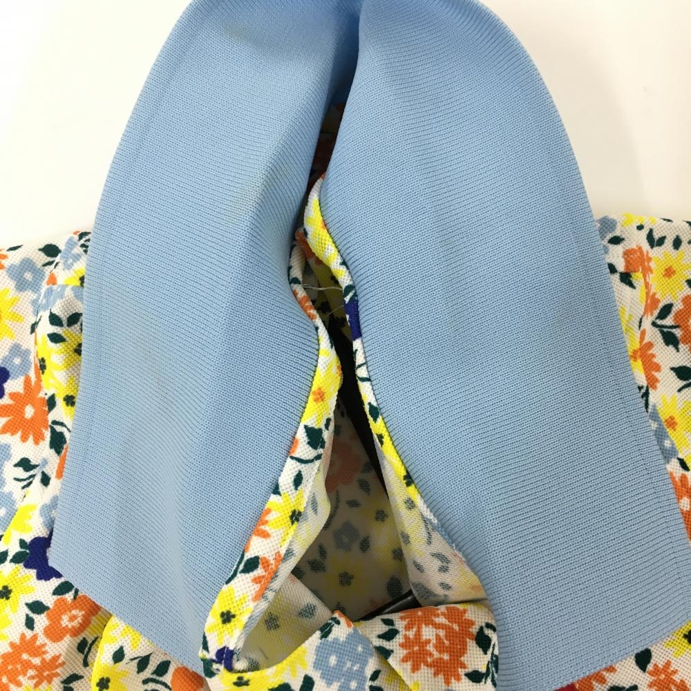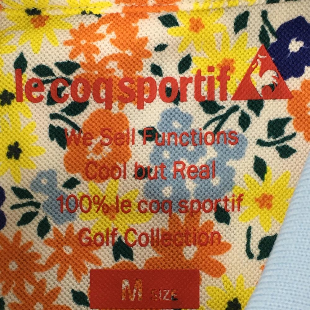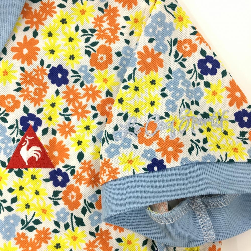 ルコック 半袖ポロシャツ ライトブルー×イエロー 小花総柄 レディース M ゴルフウェア le coq sportif