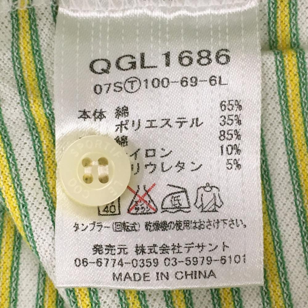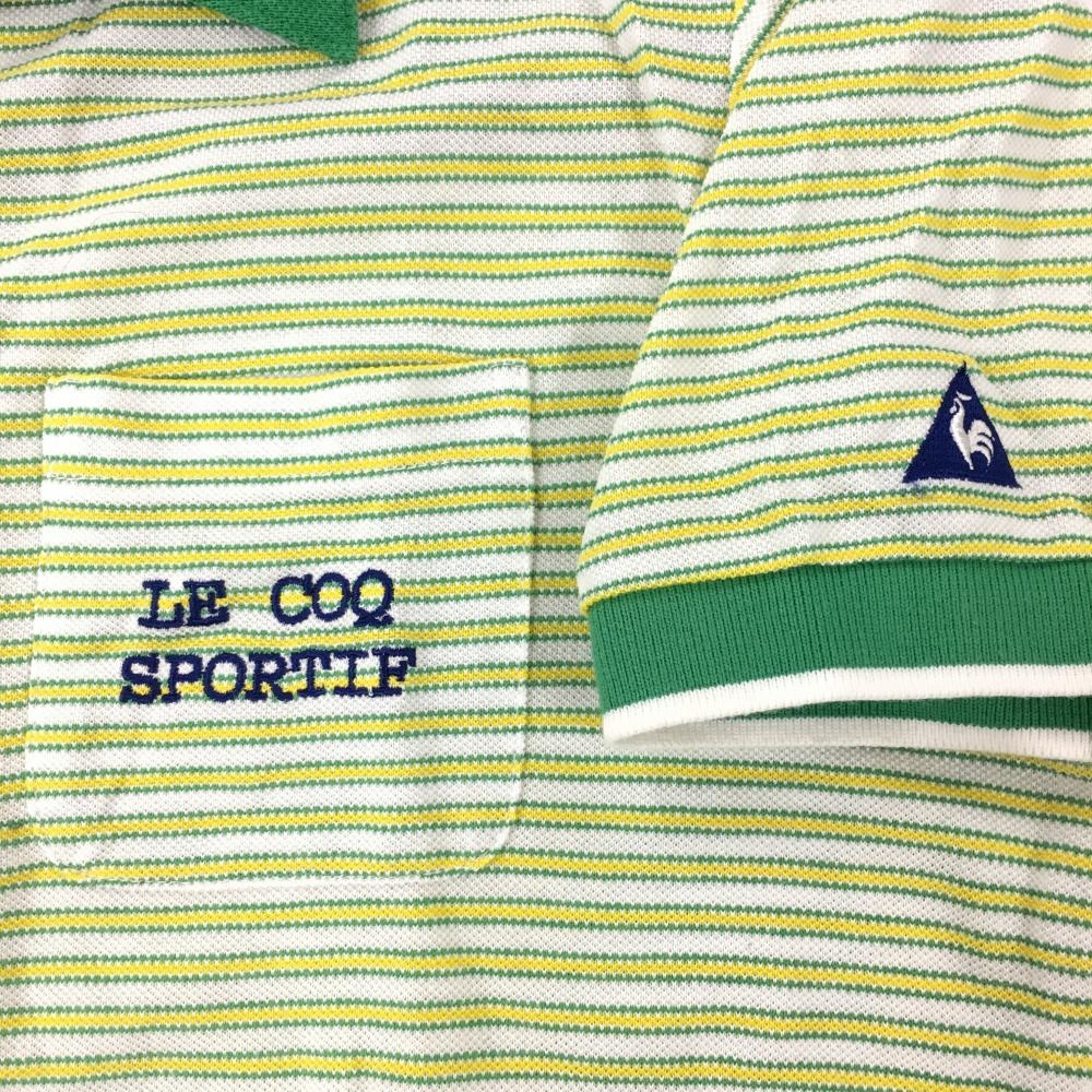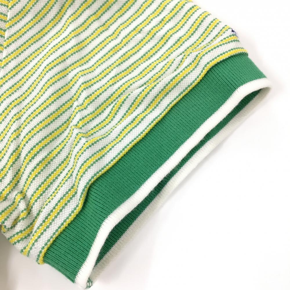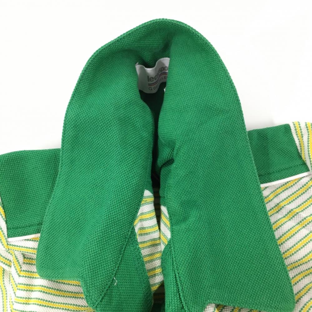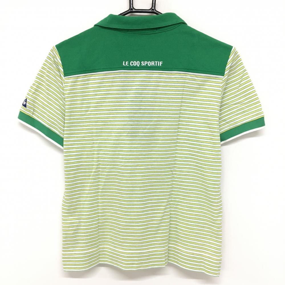 ルコックゴルフ 半袖スキッパーシャツ グリーン×イエロー ボーダー レディース M ゴルフウェア le coq sportif
