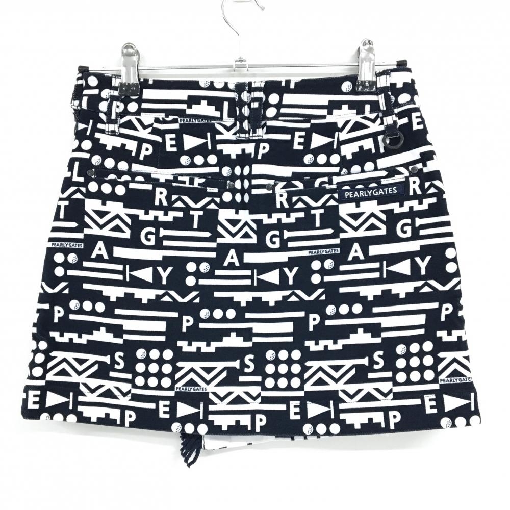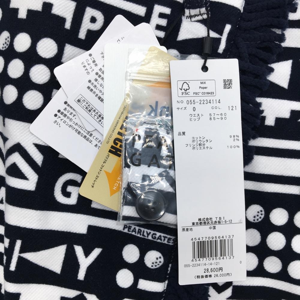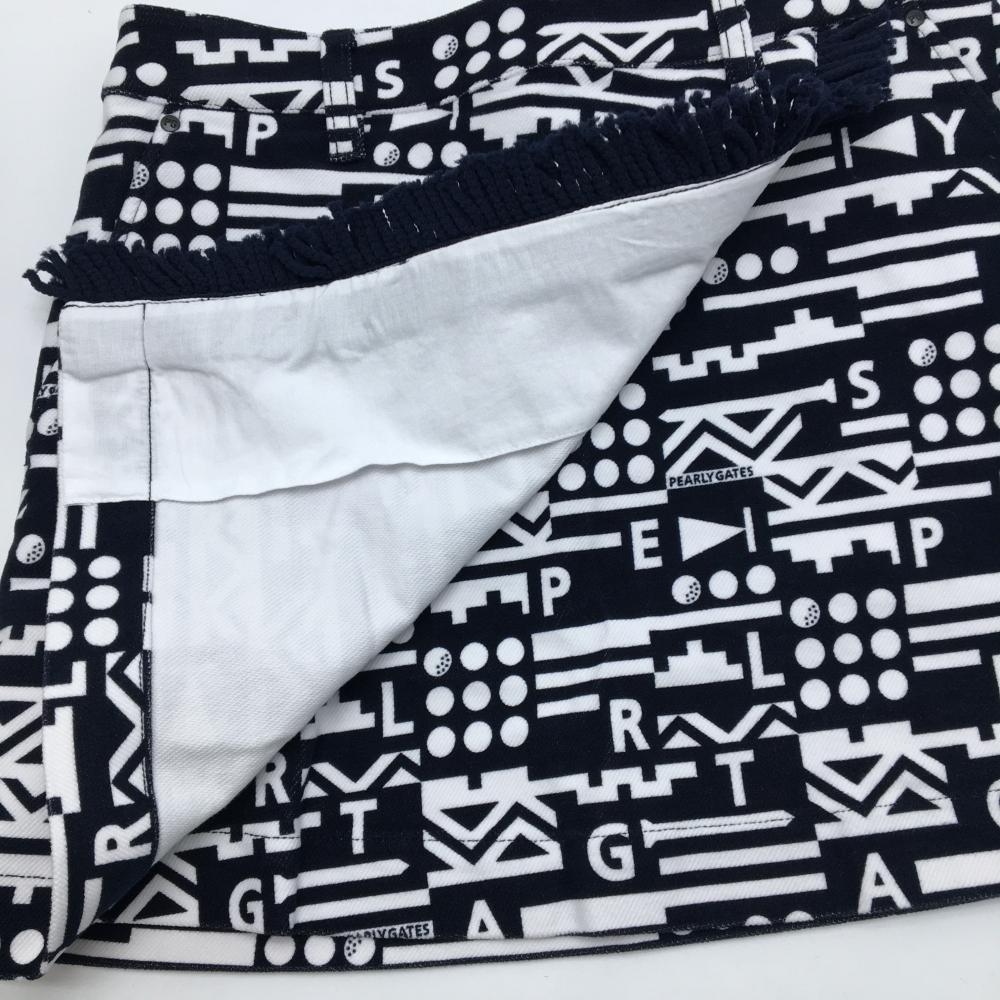 【新品】パーリーゲイツ スカート ダークネイビー×白 総柄 フリンジ ストレッチ レディース 0(S) ゴルフウェア PEARLY GATES
